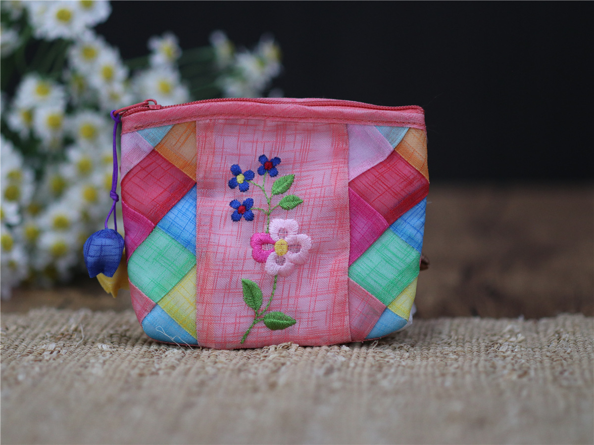 연변 민속 특징 한국식 거즈 자수 작은 가방 휴대용 한국어 작은 동전 지갑 휴대용 선물 여행스토어 가기