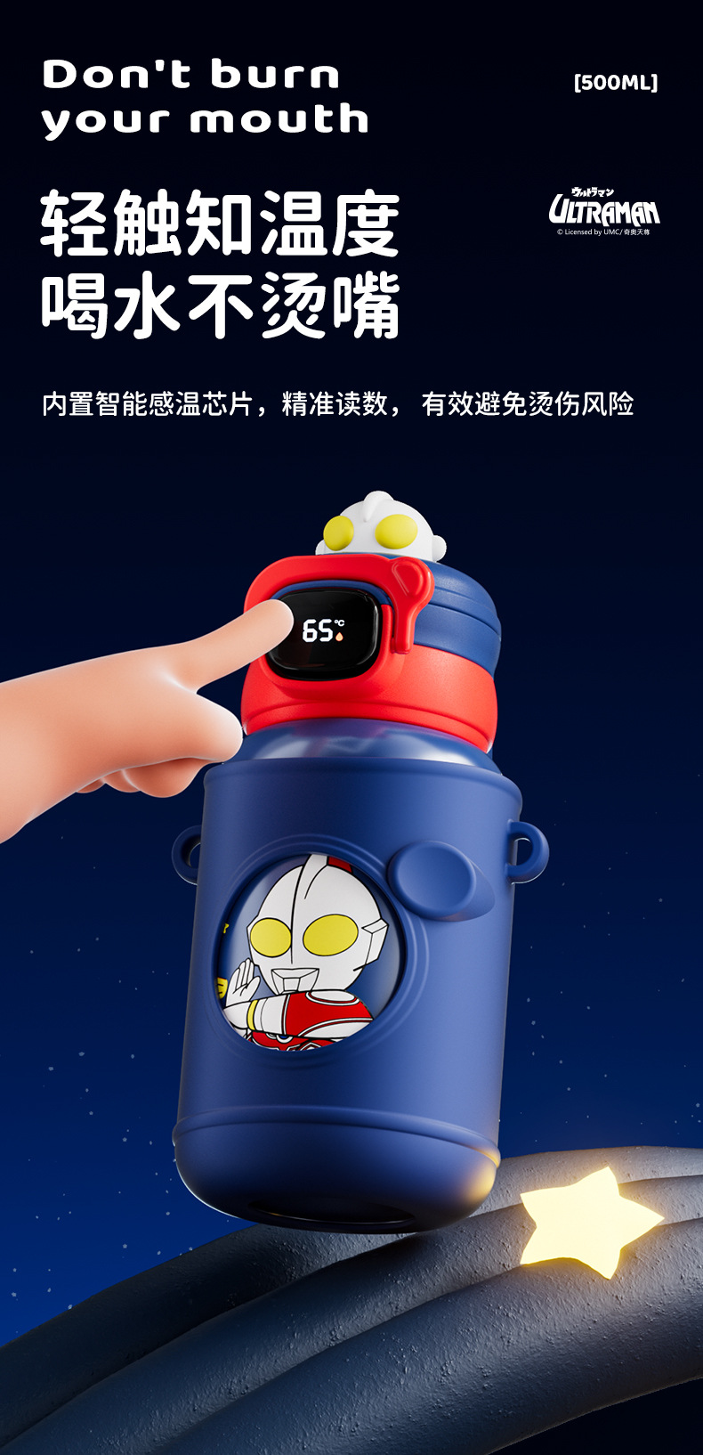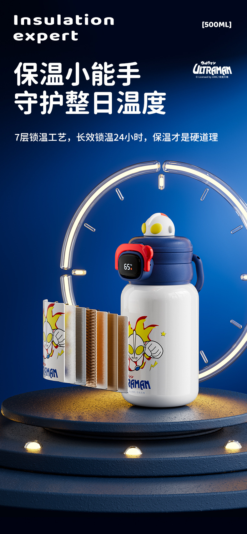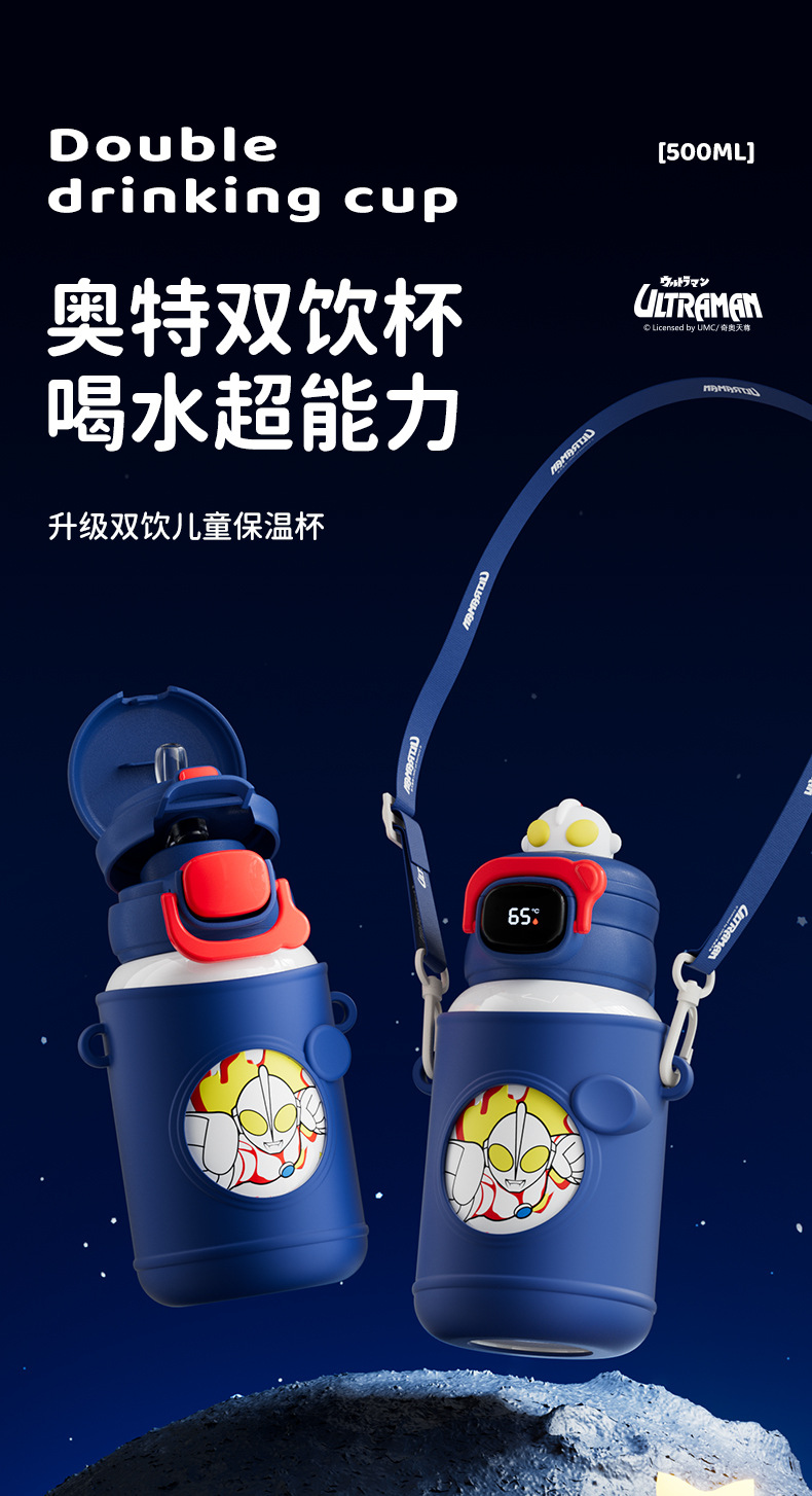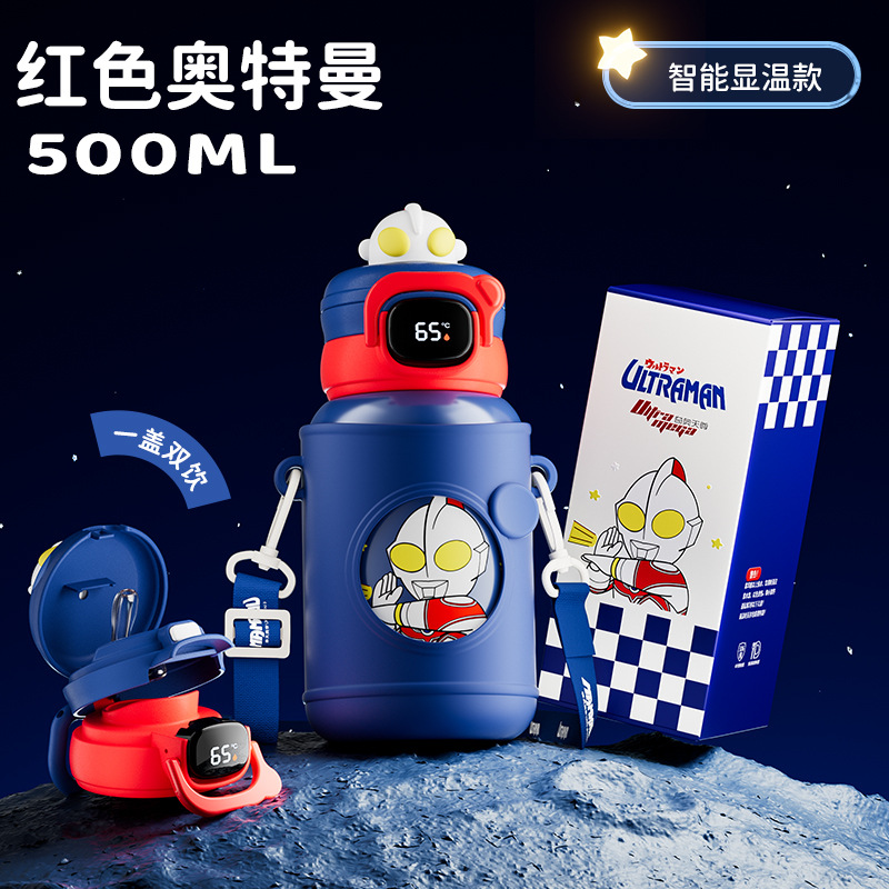 터치 컨트롤 온도 표시 스마트 보온병 컵 울트라맨 어린이 물컵 절연 316 스테인레스 스틸 휴대용 학생 주전자