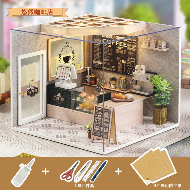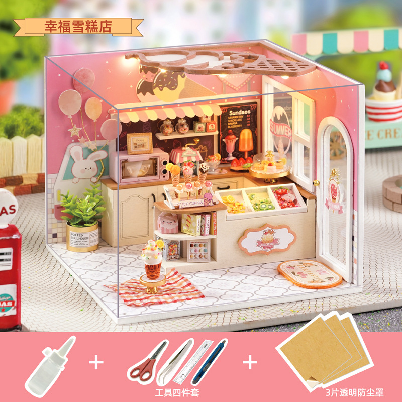 새로운 집 diy 조립 캐빈 모델 미니어처 케이크 가게 밀크 티 샵 디저트 가게 수제 조립 선물스토어 가기