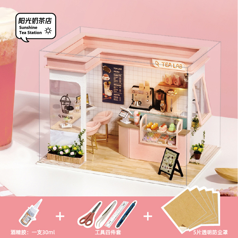 • 선샤인 밀크티 가게 + 도구 + 먼지 커버 + 램프
