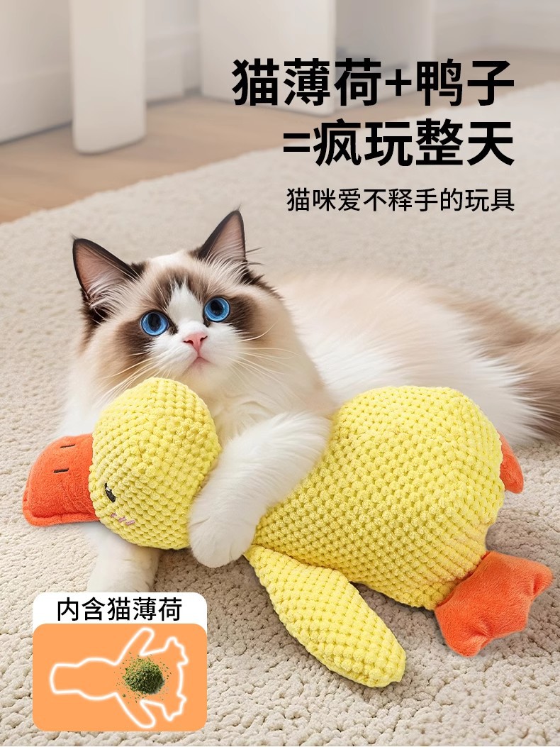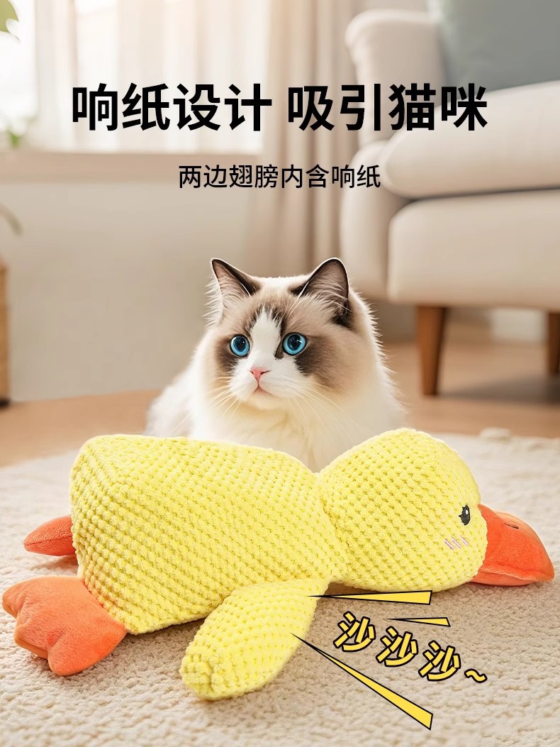 캣닢 장난감, 소리나는 종이 장난감, 노란 오리, 고양이를 위한 자가놀이, 심심함 해소, 고양이 놀이, 상호작용, 고양이를 만지기, 캣닢 봉제인형스토어 가기
