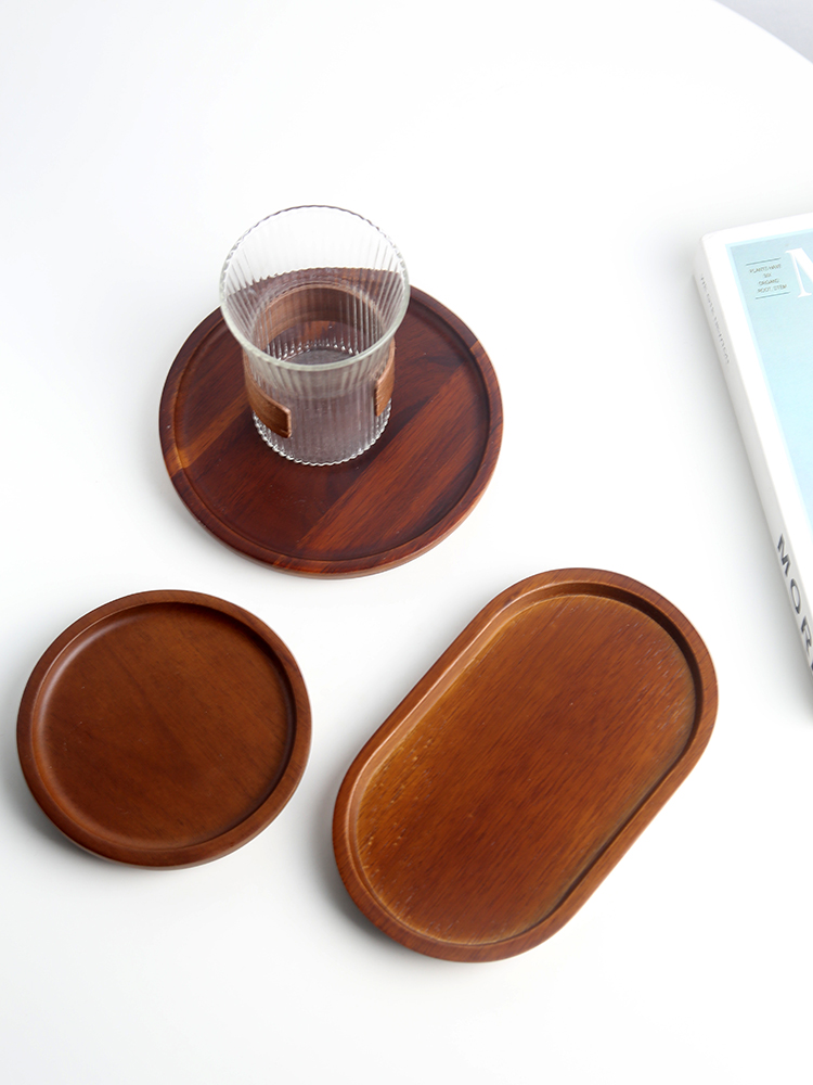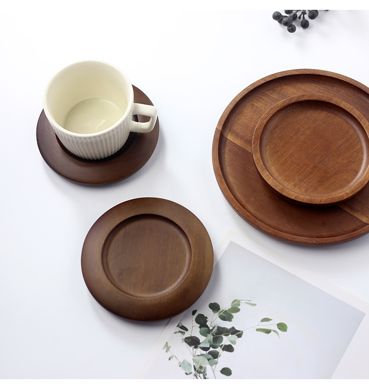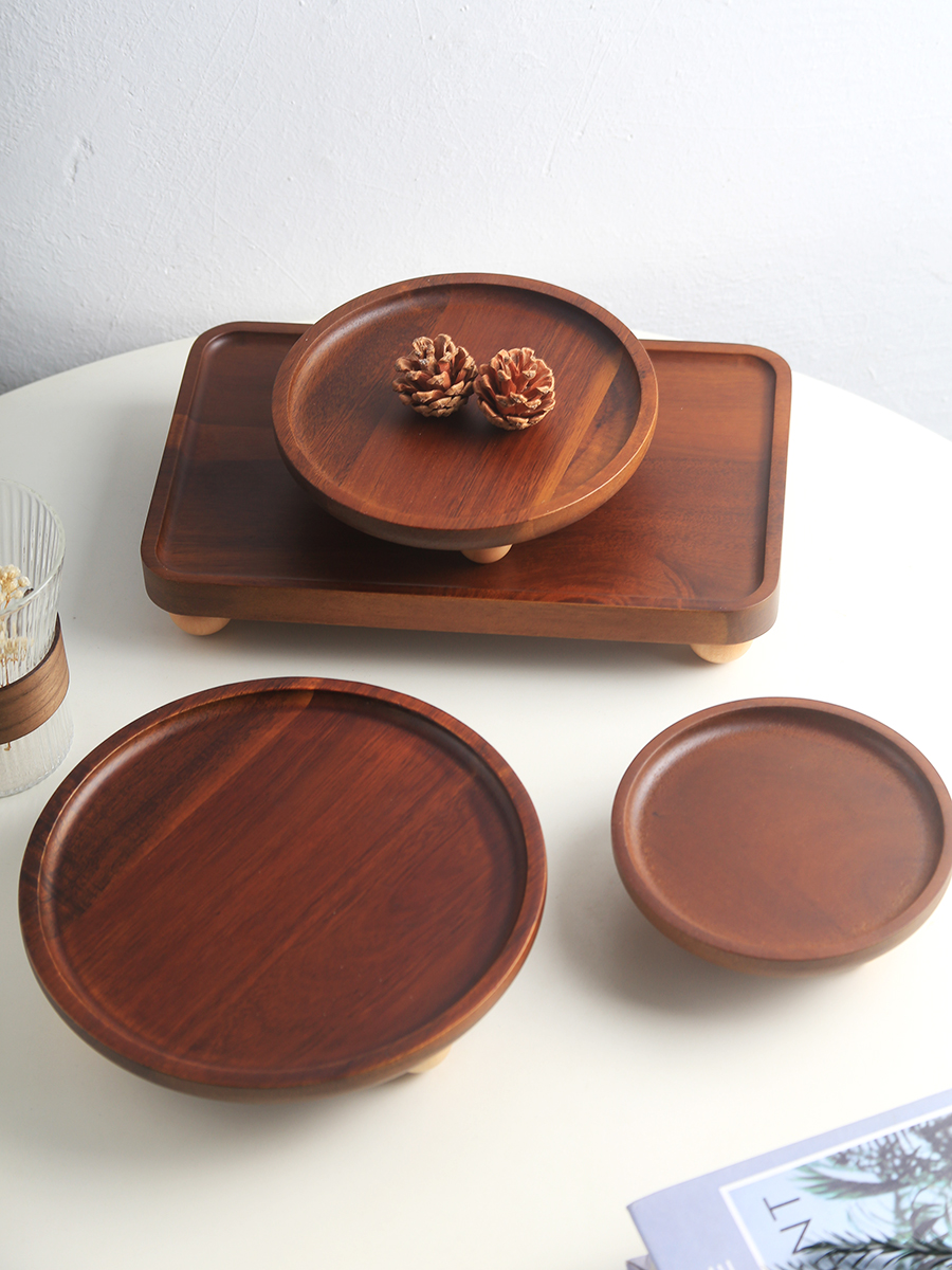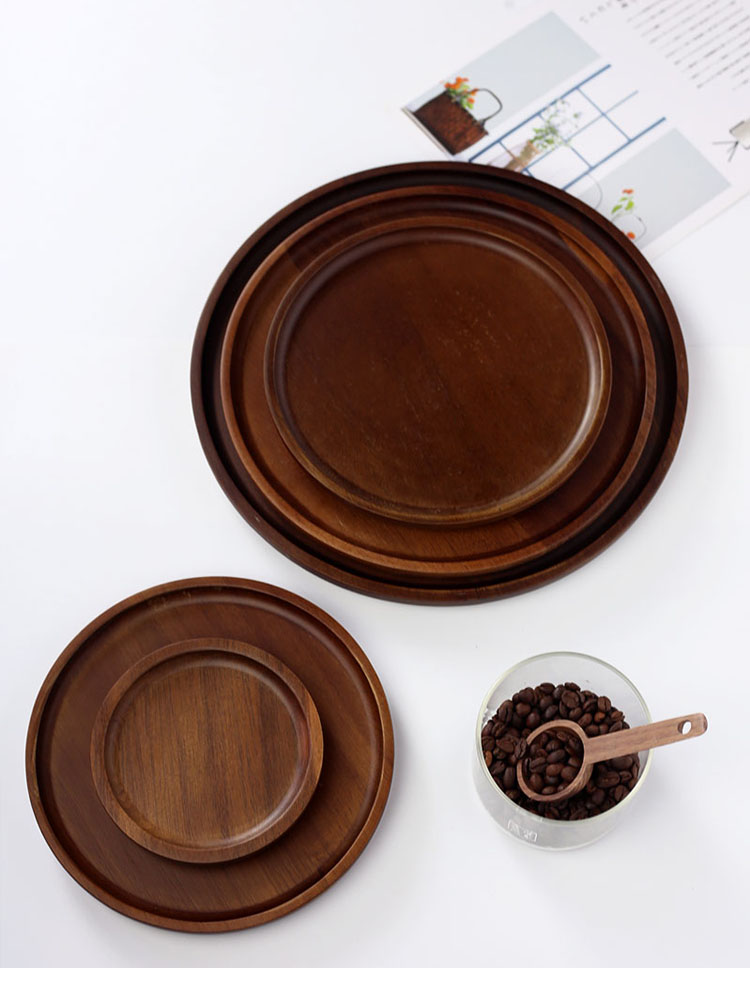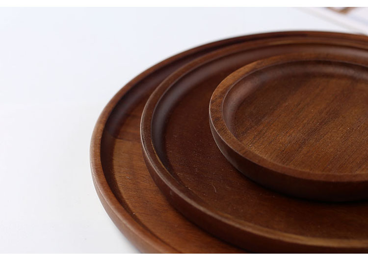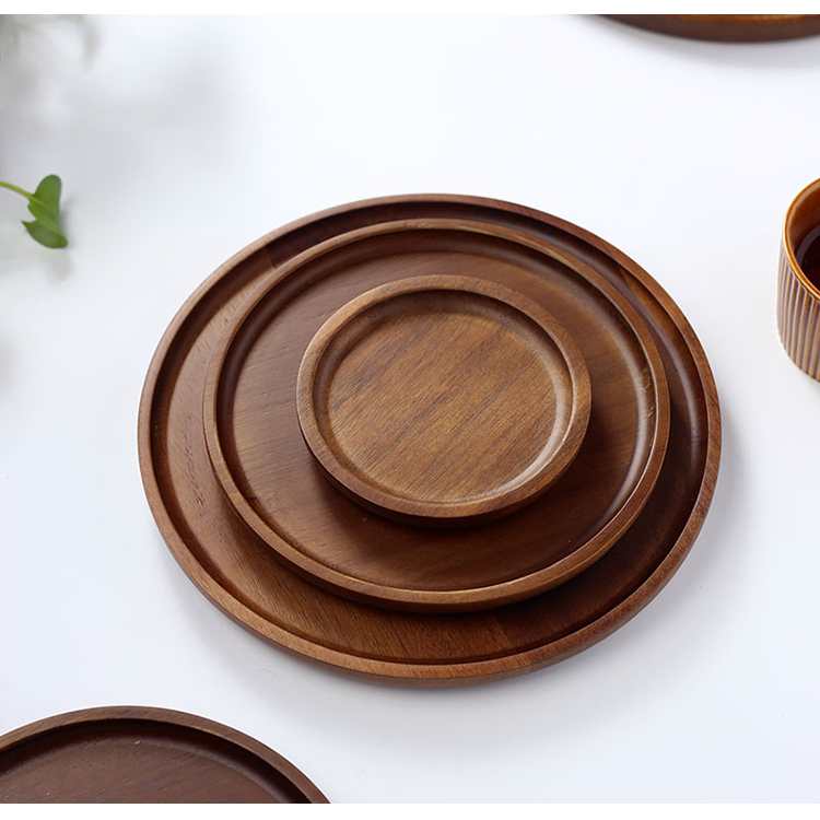 맞춤형 로고 단단한 나무 디너 트레이 라운드 티 트레이 방수 접시 나무 접시 나무 원형 디스크 대형