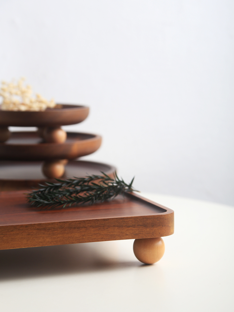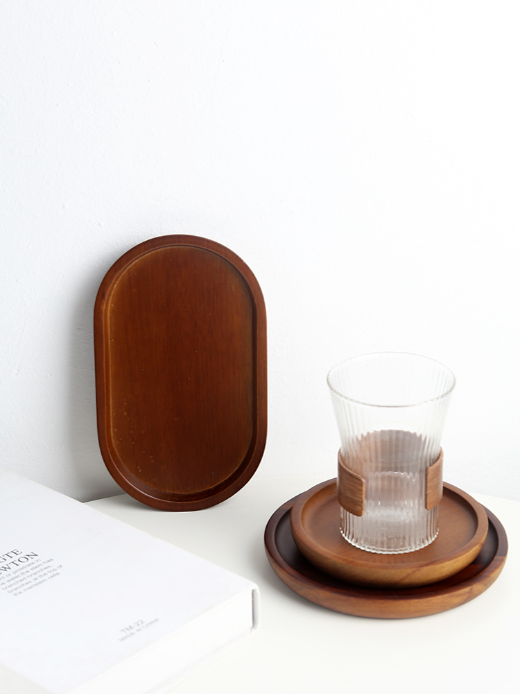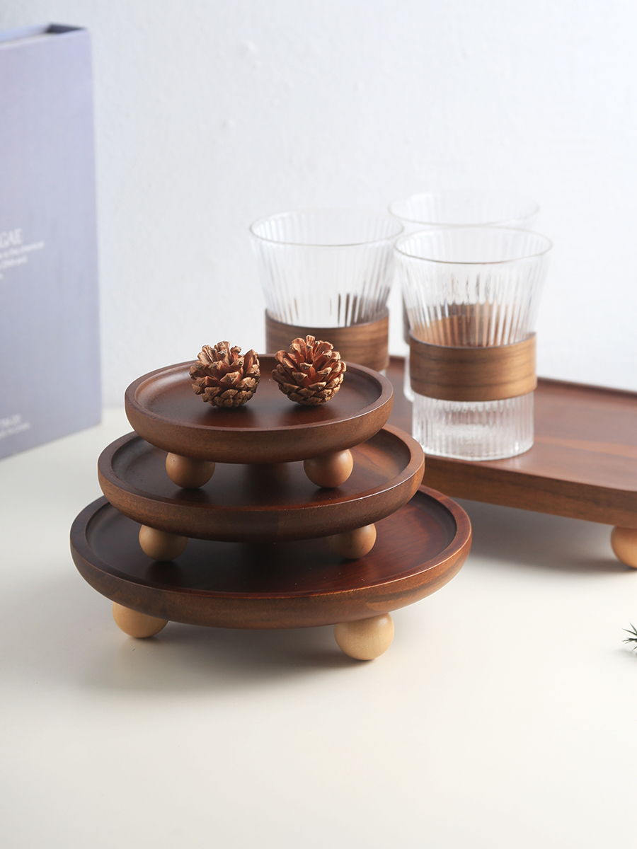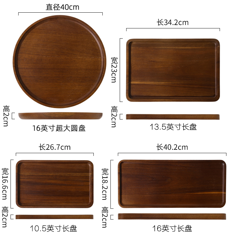 맞춤형 로고 단단한 나무 디너 트레이 라운드 티 트레이 방수 접시 나무 접시 나무 원형 디스크 대형