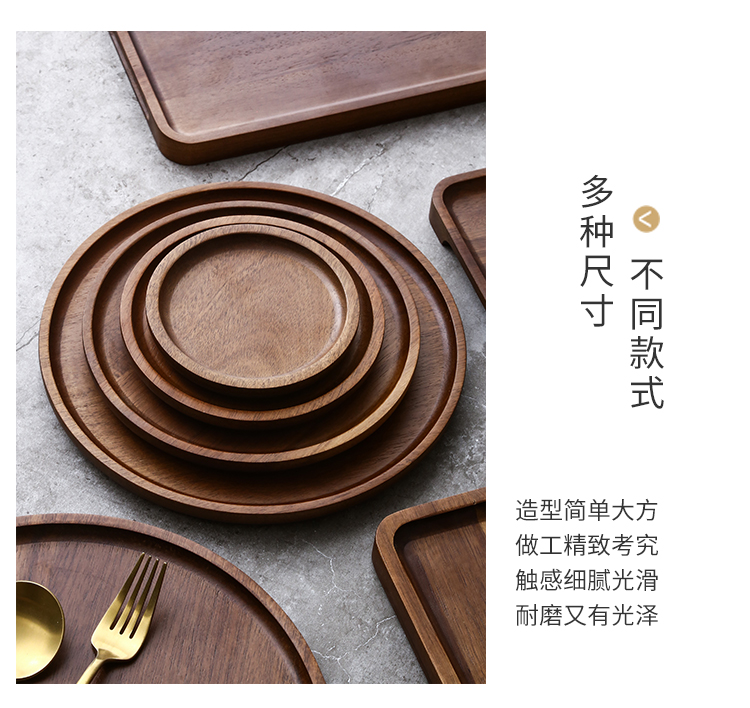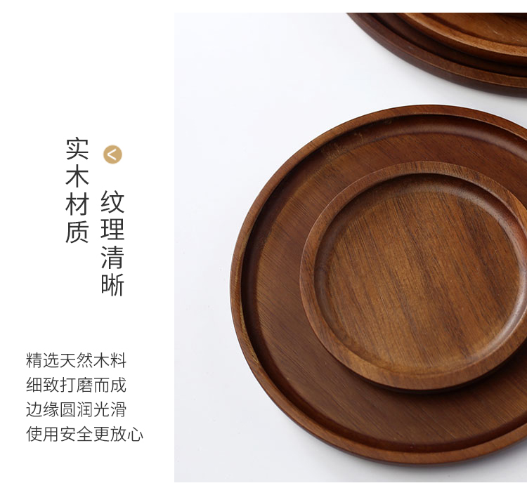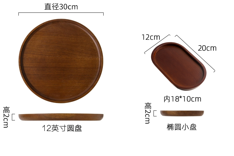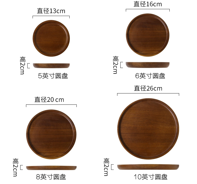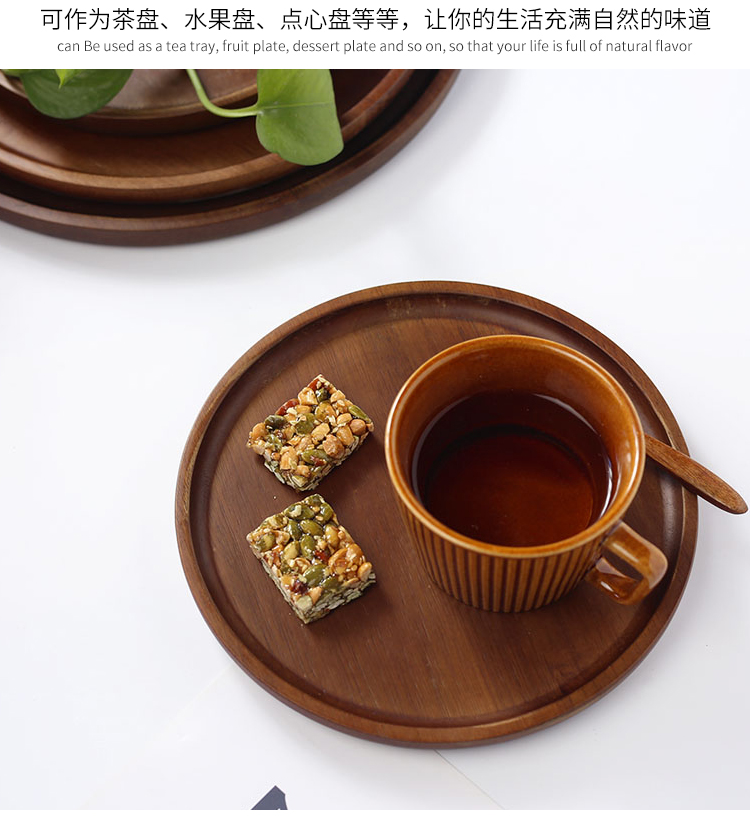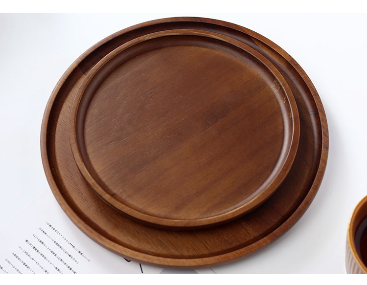맞춤형 로고 단단한 나무 디너 트레이 라운드 티 트레이 방수 접시 나무 접시 나무 원형 디스크 대형스토어 가기