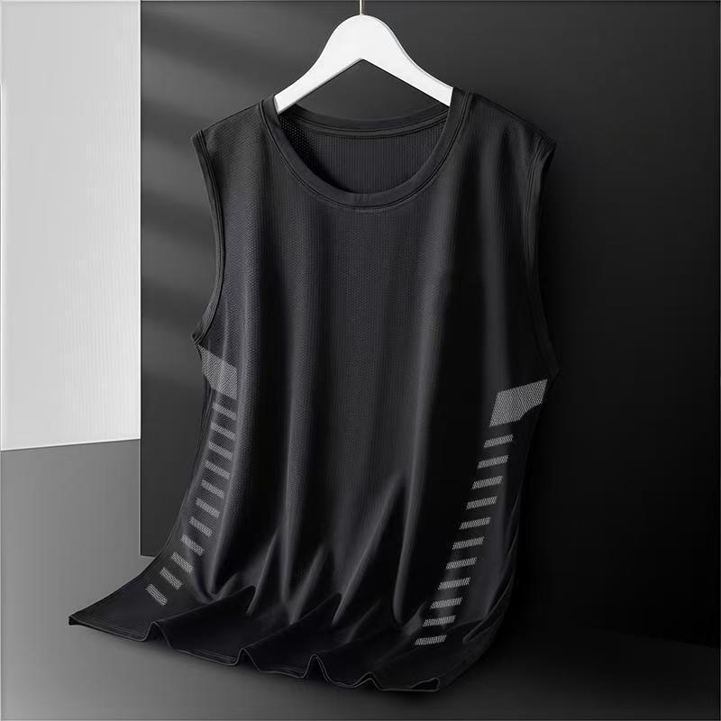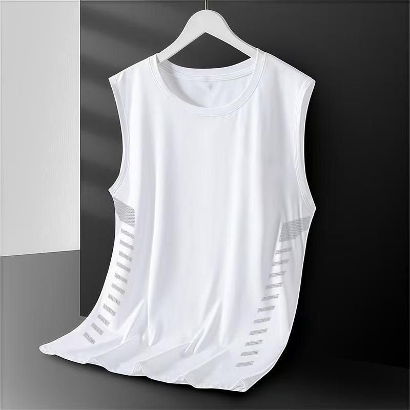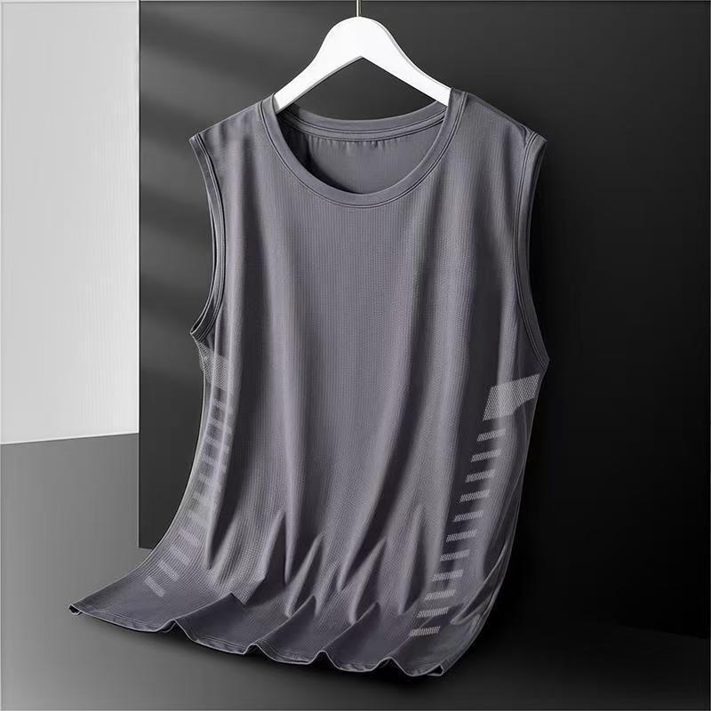아이스 실크 조끼 라운드 넥 속건성 여름 루즈 대형 스포츠 티셔츠 남성 캐주얼 스타일 얇은 겉옷 민소매
