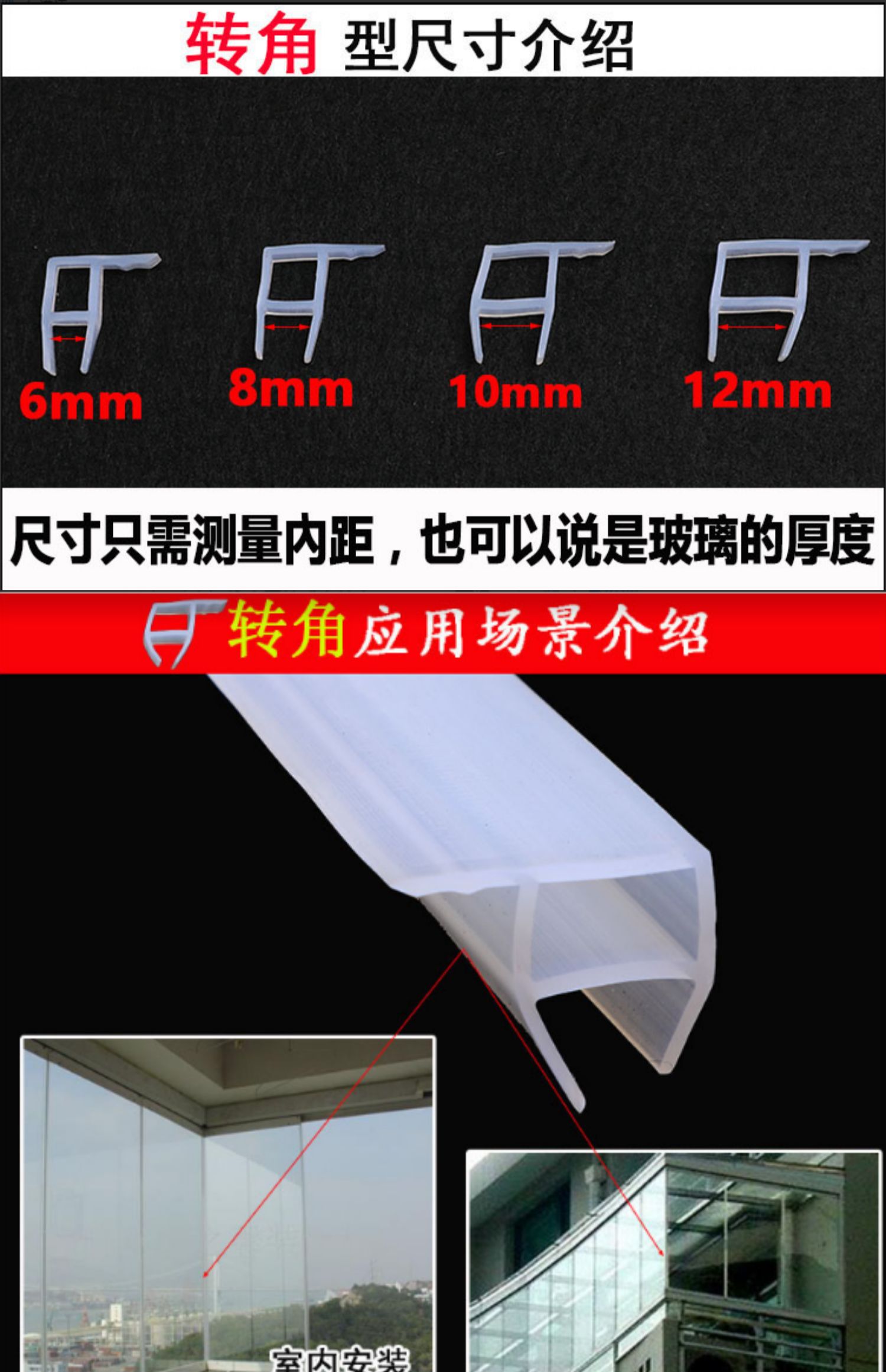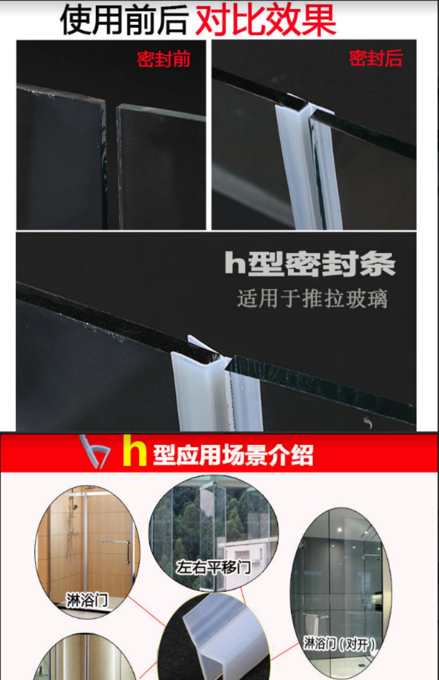 ✅ 샤워실 물차단 스트립 F 씰링 스트립 실리콘 유리 도어 스트립 프레임리스 발코니 창문 틈새 H형 방풍 접착제