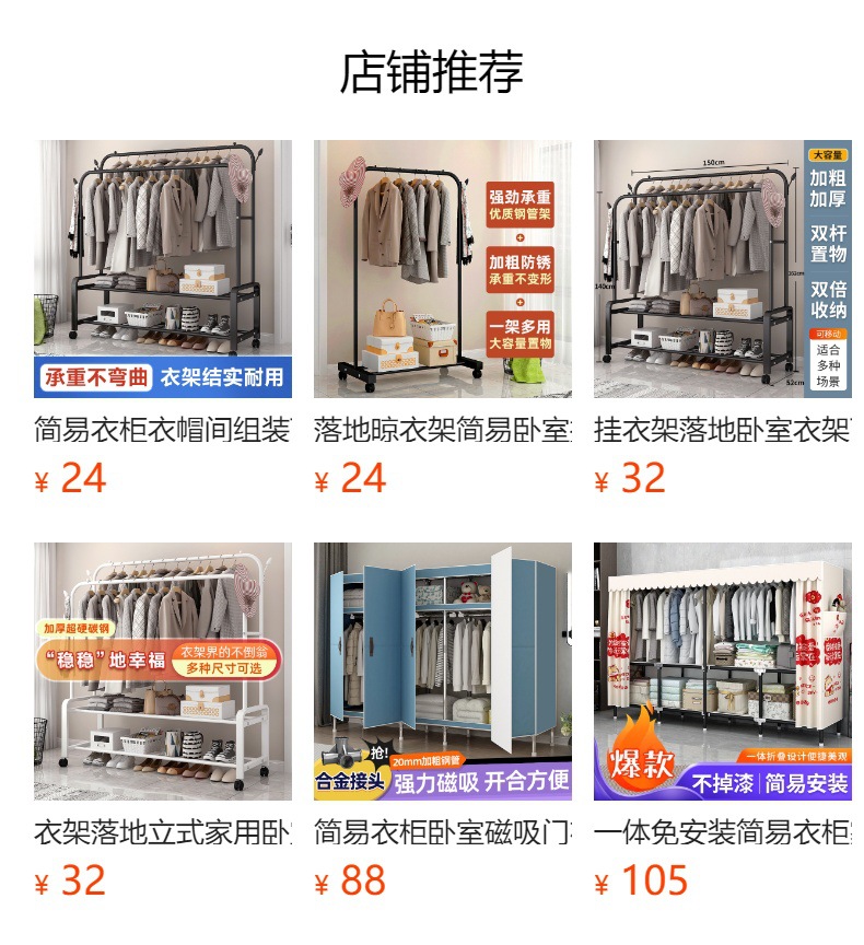 간단한 옷장 옷걸이 패브릭 옷걸이 기숙사 임대 집 철 선반 침실 보관 현대 간단한스토어 가기