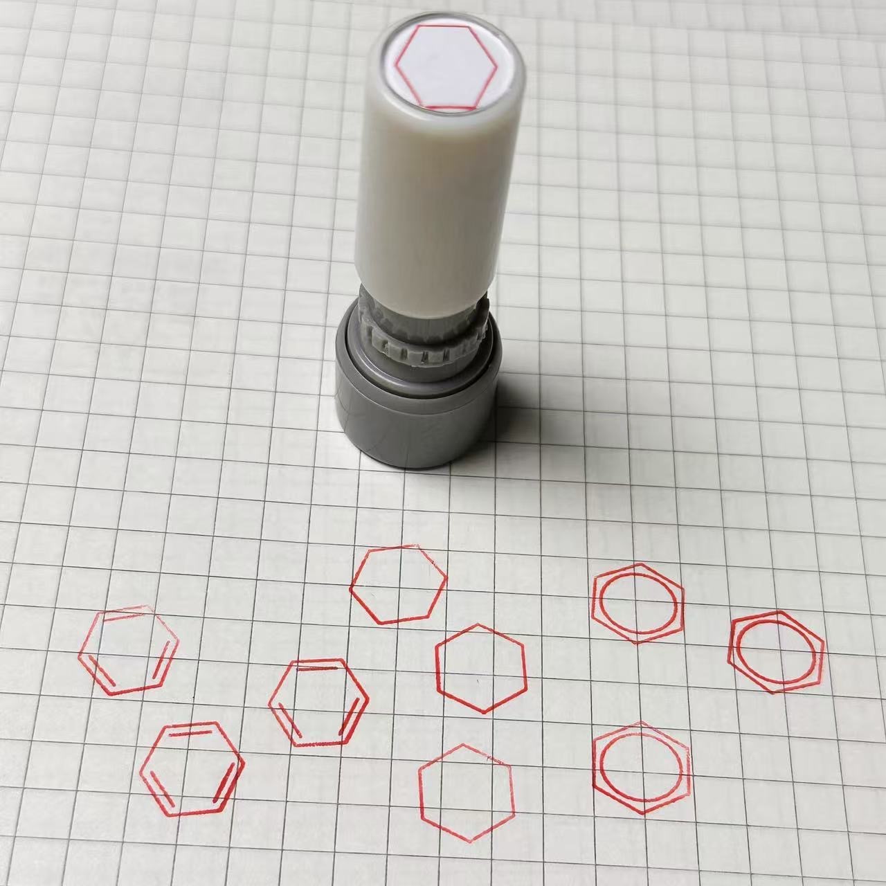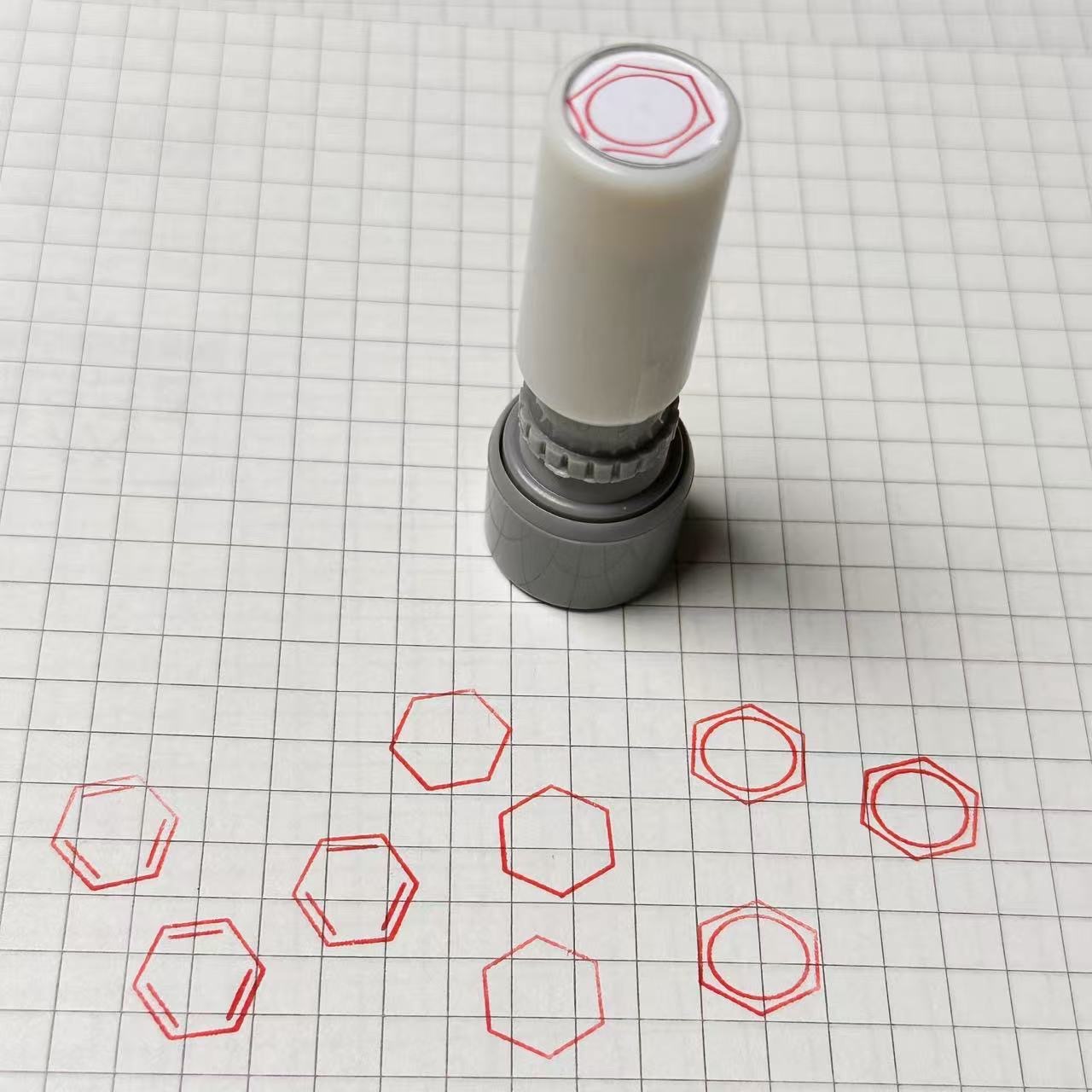 벤젠 반지형 스탬프, 벤젠 분자 구조, 화학적 인쇄, 휴대용 학생용 소형 원형 스탬프, 육각형 도매 배송