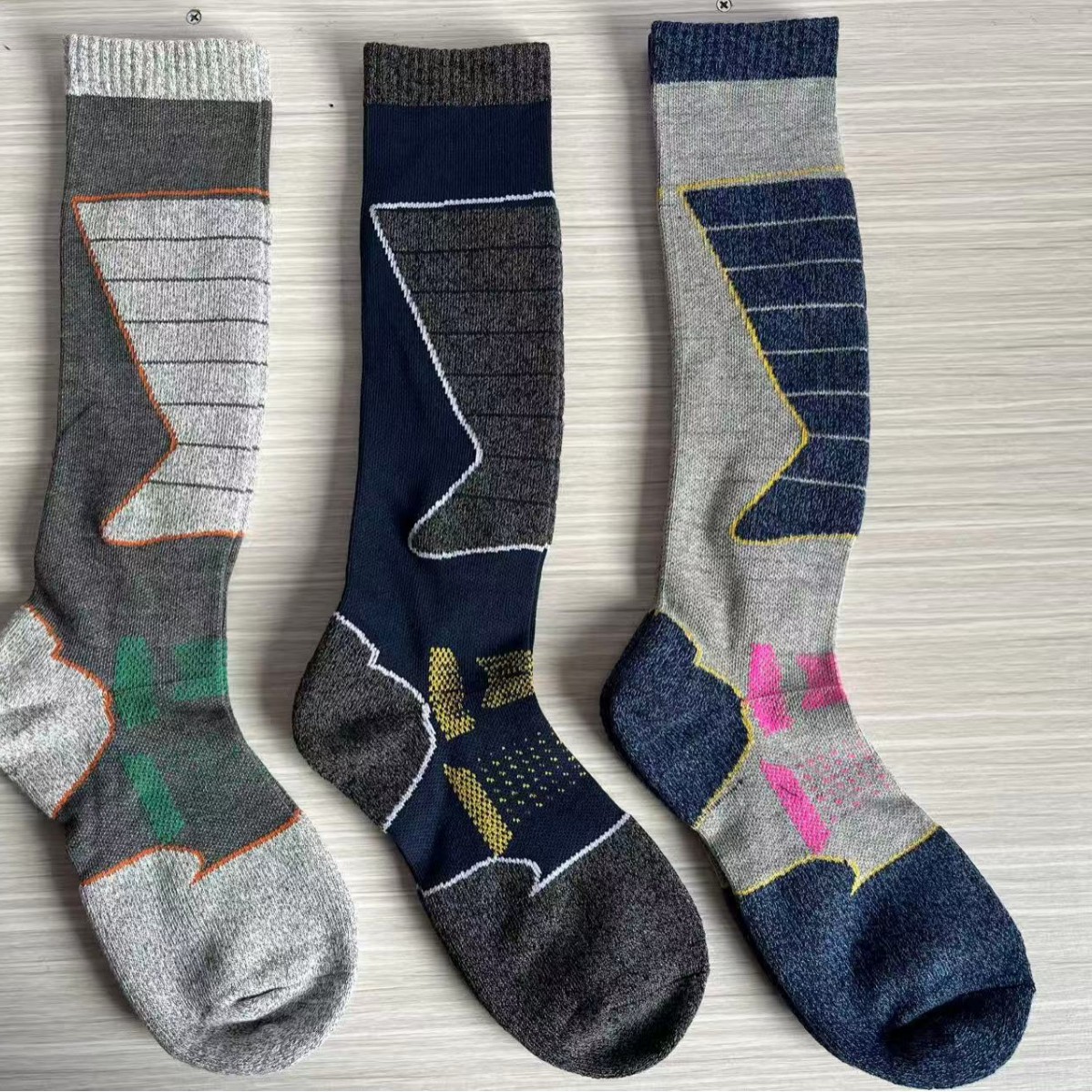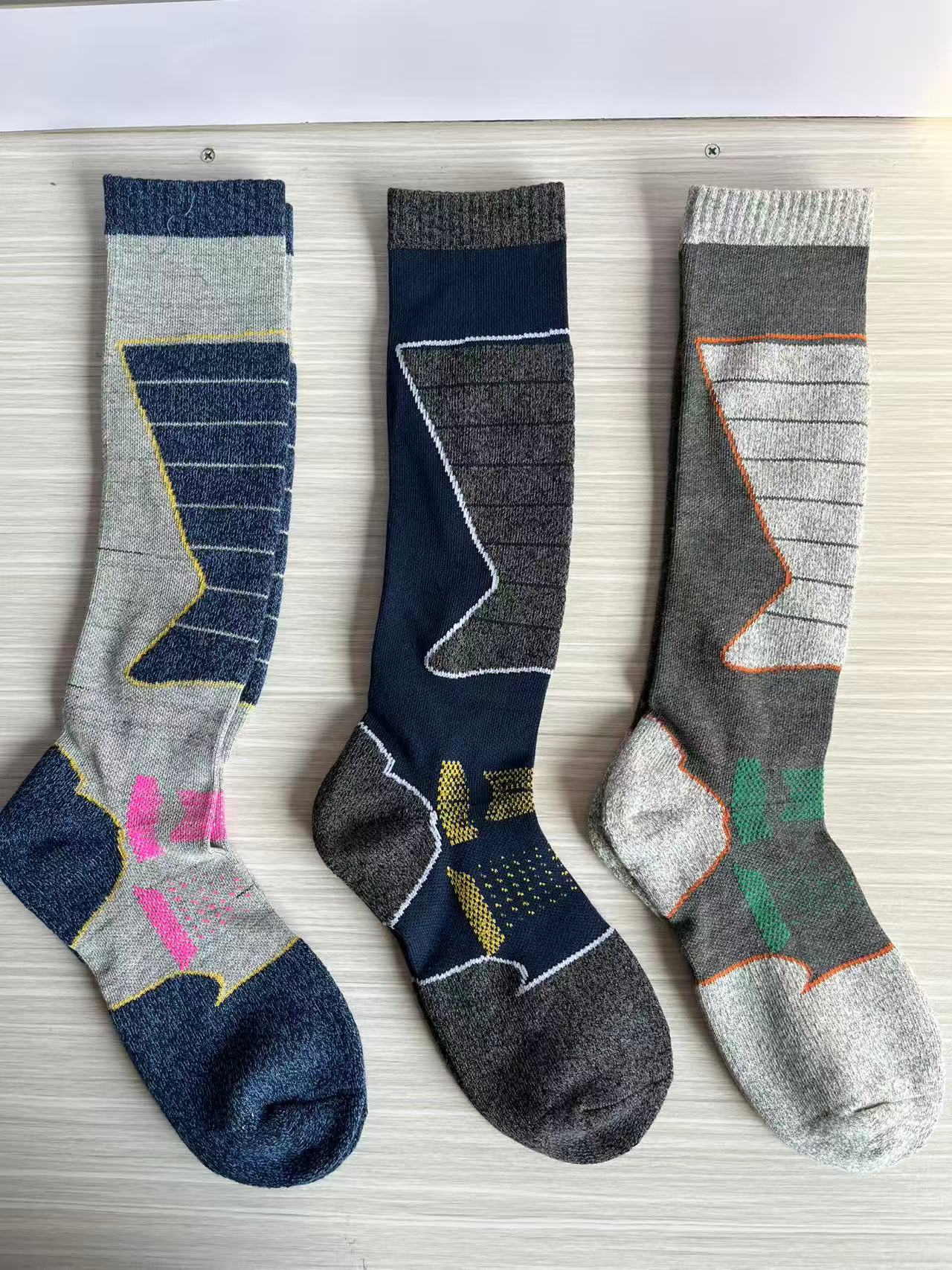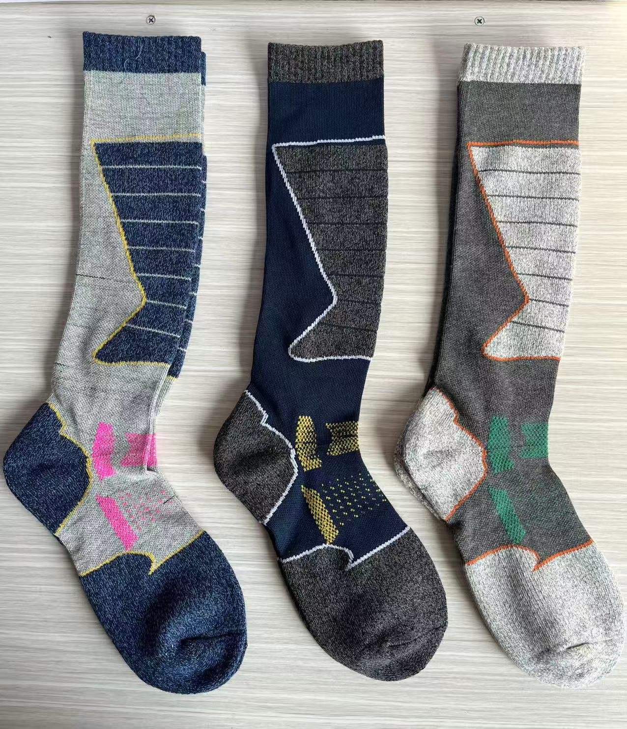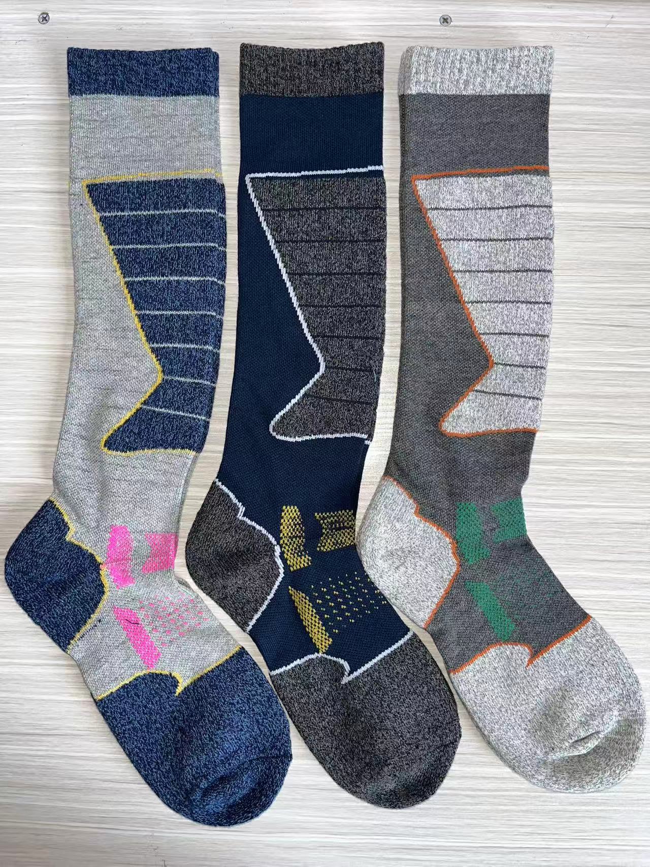 야외 스키 양말, 두꺼운 스포츠 타월 바닥, 편안한 남성용 하이킹 양말, 여성용 긴 땀 흡수 도매 양말, 면 따뜻함