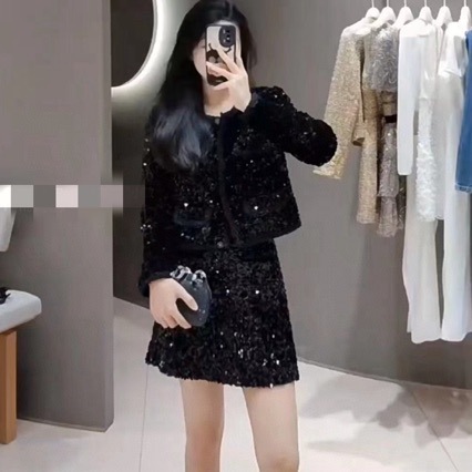 2024 봄 여름 신상 블랙 스팽글 장식 A라인 미니 스커트스토어 가기