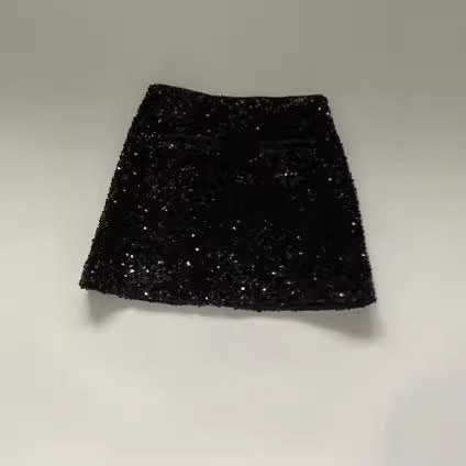 2024 봄 여름 신상 블랙 스팽글 장식 A라인 미니 스커트