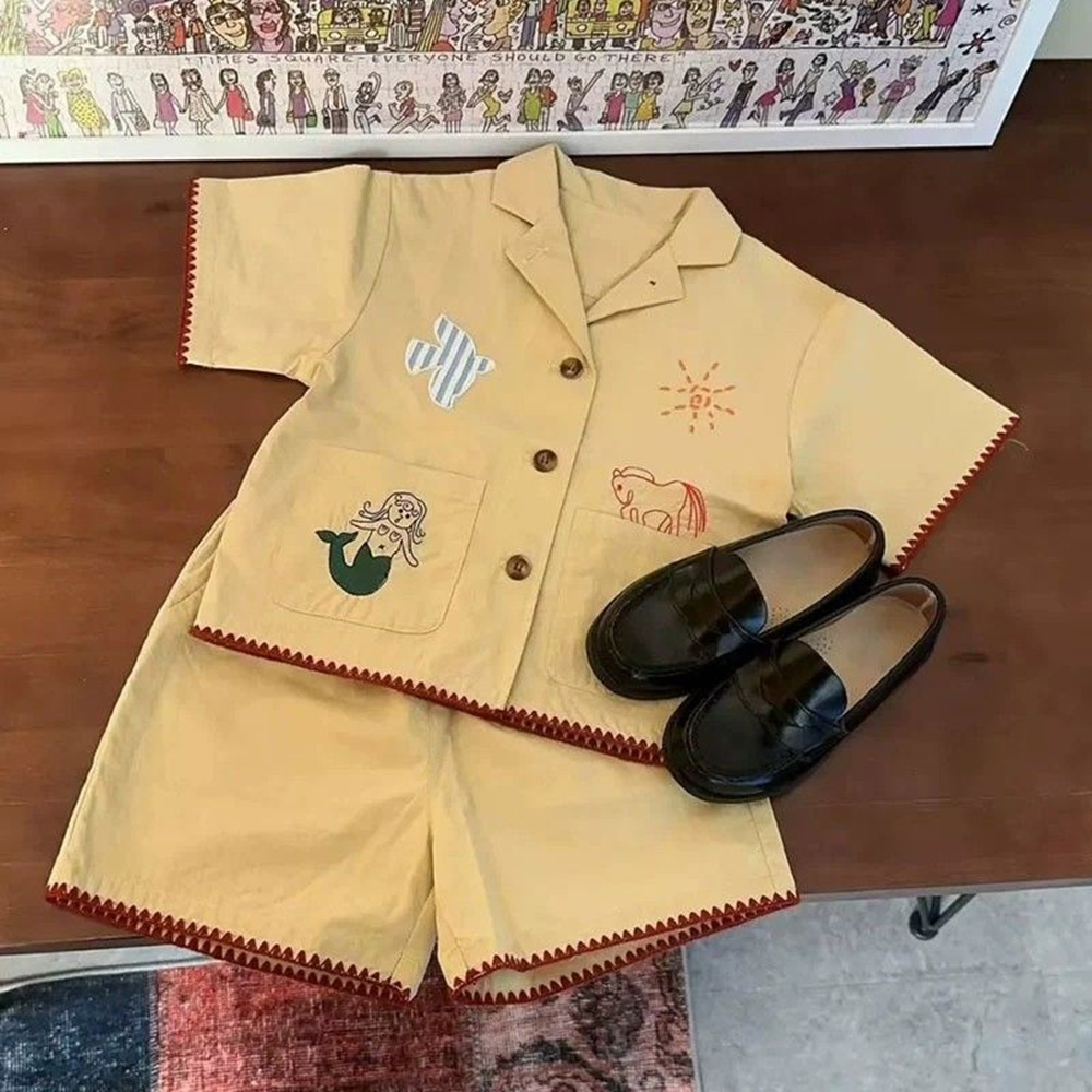 소년 여름 스트리트 슈트 2025 새로운 얇은 멋진 반팔 셔츠 캐주얼하고 세련된 투피스 세트스토어 가기