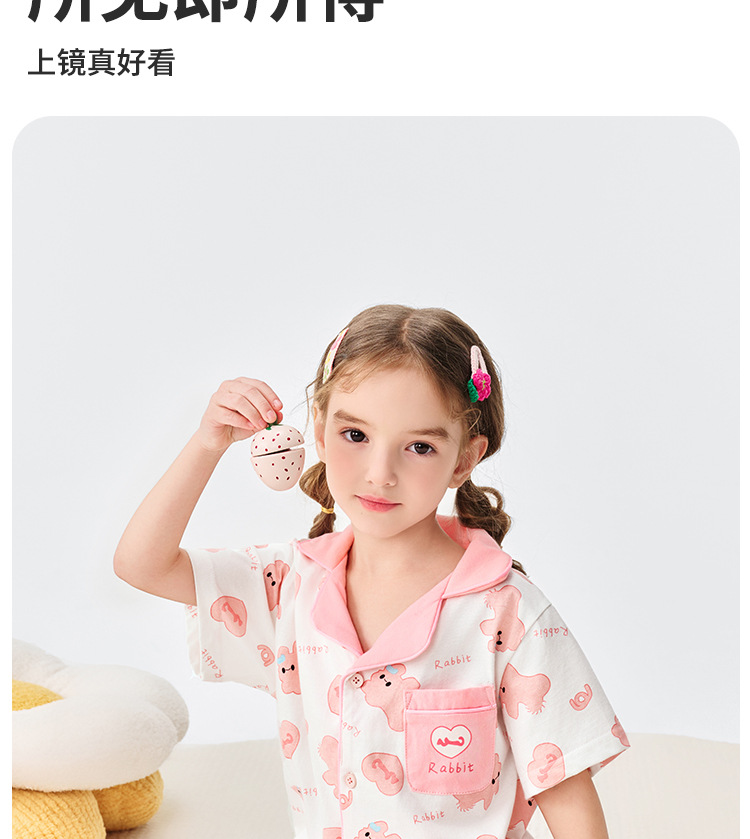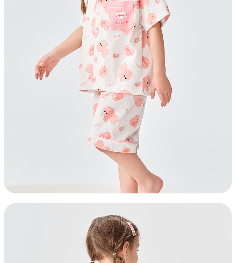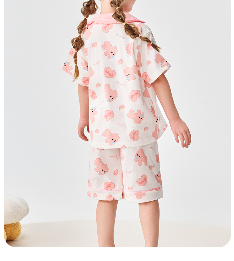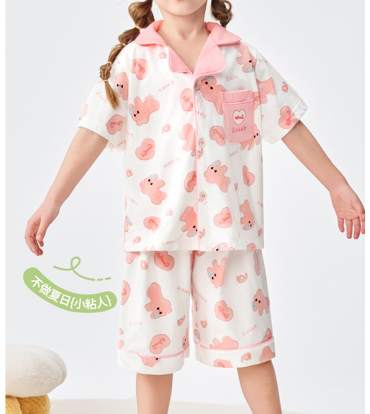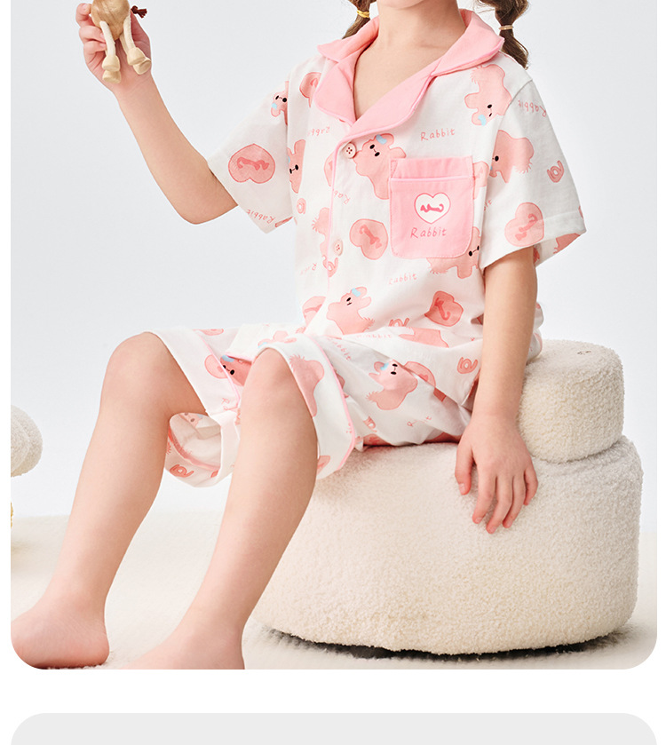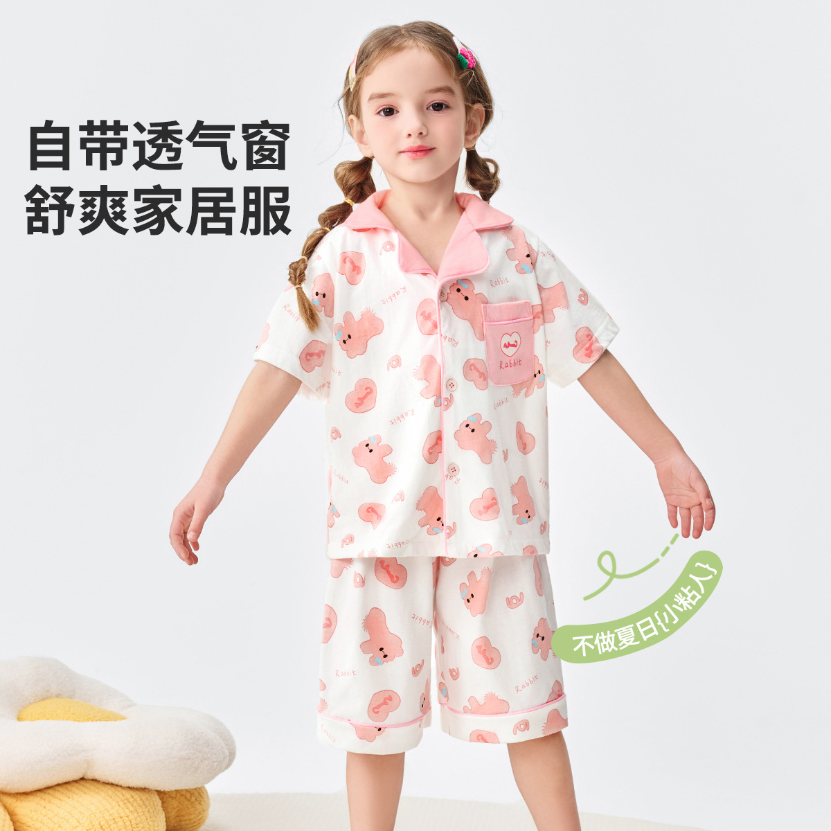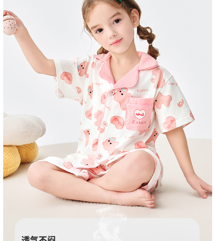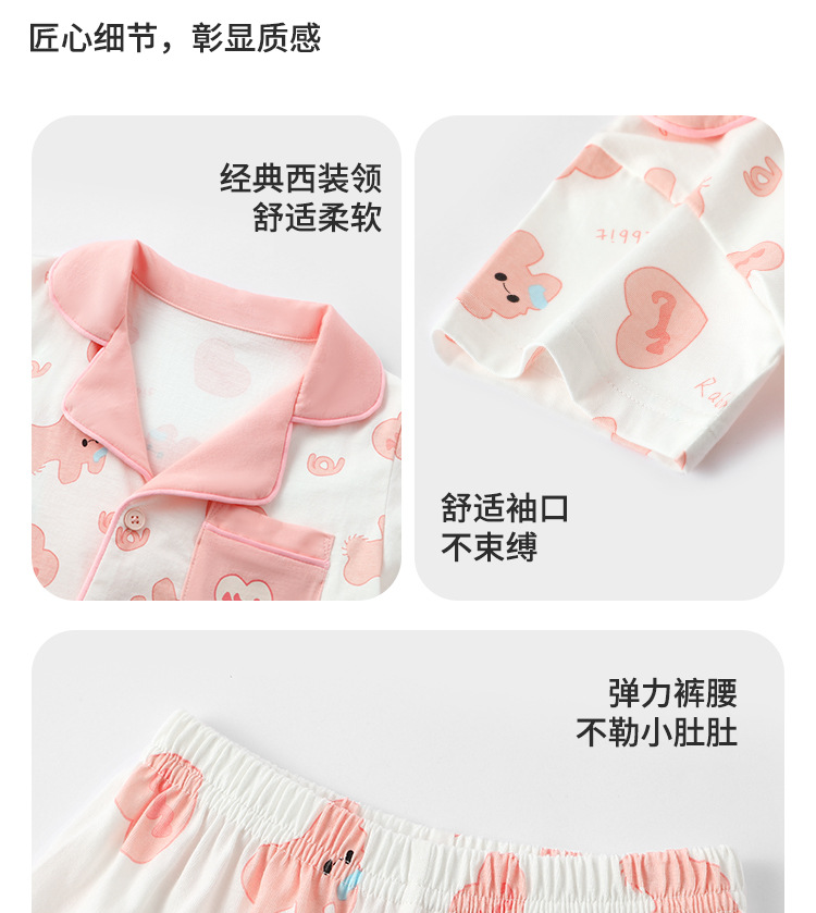 Badi Badi 새 베이비 슈트 반팔 반바지 여름 잠옷 옷깃 카디건 소녀 홈웨어 투피스 세트스토어 가기