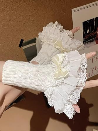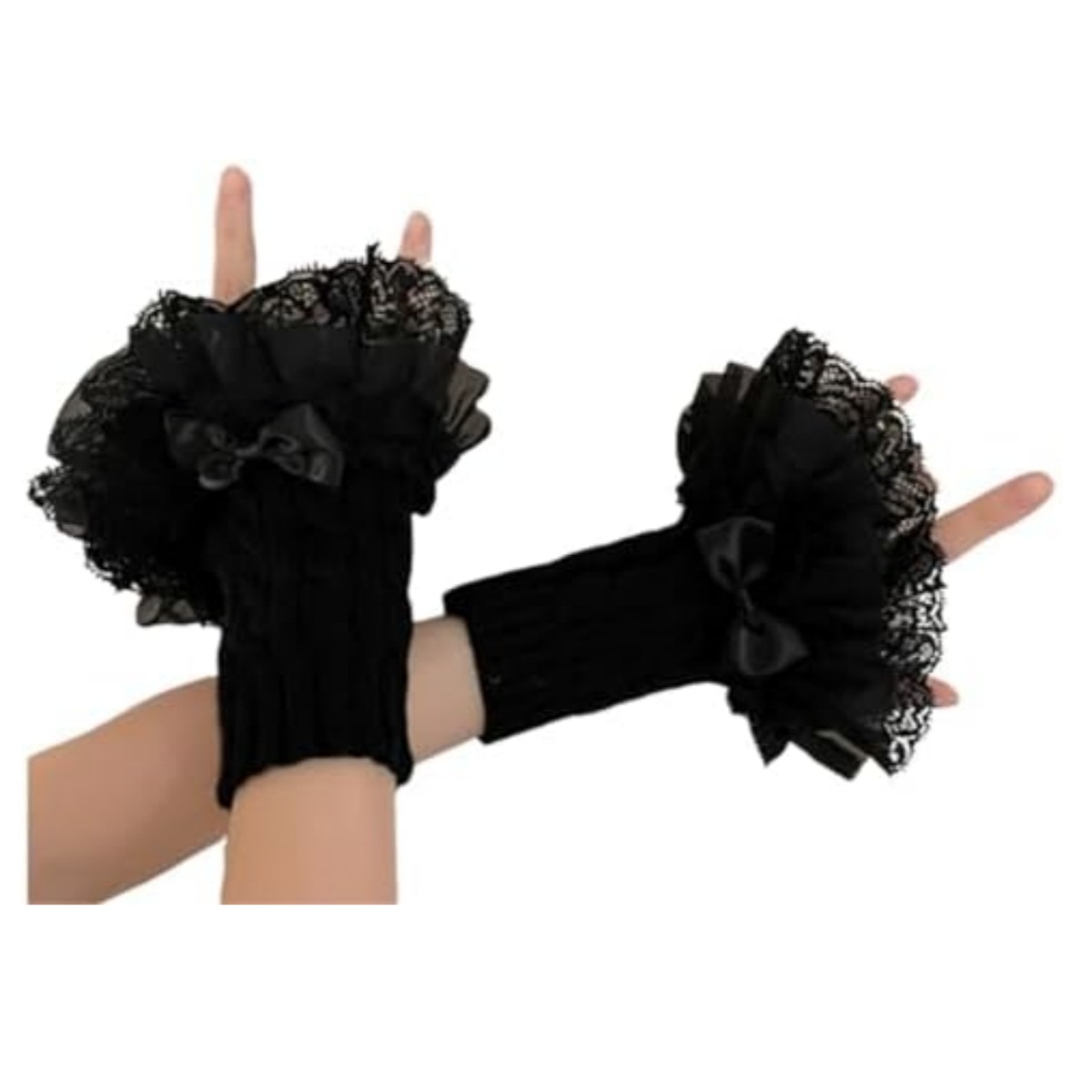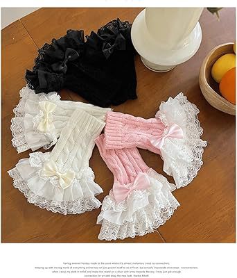 크로스보더 Y2K 레이스 보우 장갑 손가락 없는 로리타 니트 슬리브 로리타 따뜻한 가짜 슬리브 핸드 슬리브스토어 가기