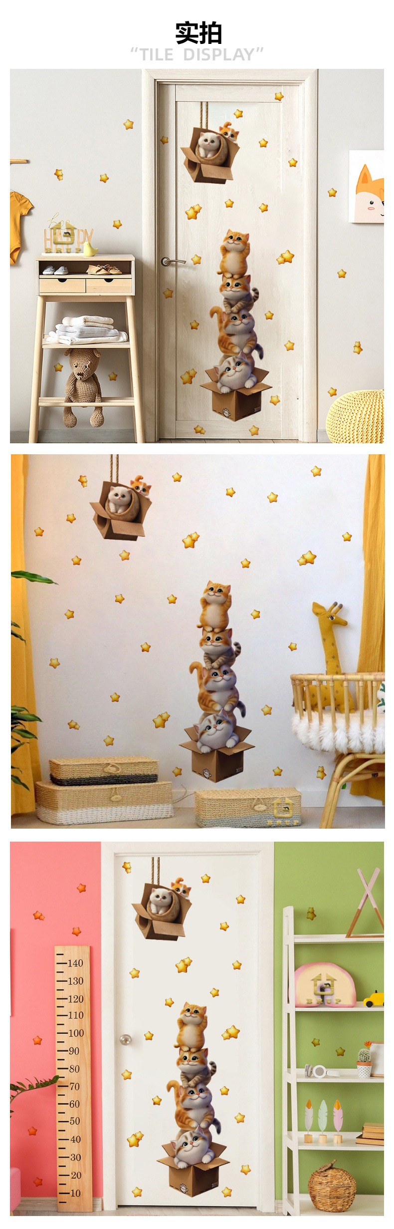 HS3896F 귀여운 고양이 스태킹 하이 스타 자체 접착 벽 스티커 침실 문 기숙사 어린이 방 장식 스티커