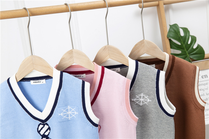韩版儿童马甲秋冬无袖背心提花图案男女童套头保暖毛衣宝宝马夹