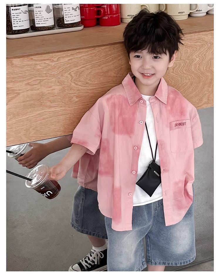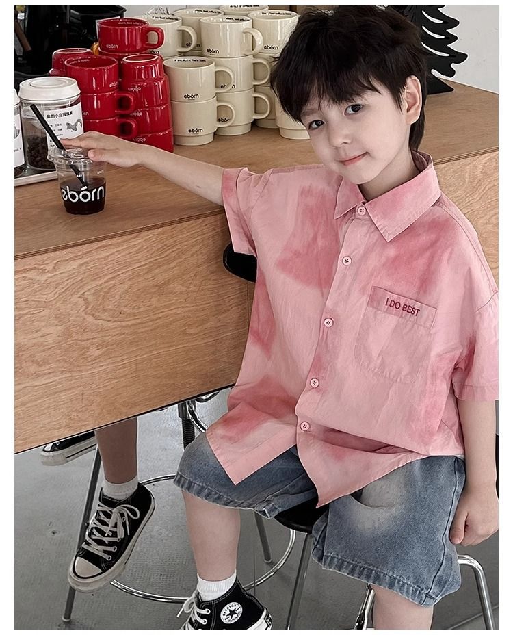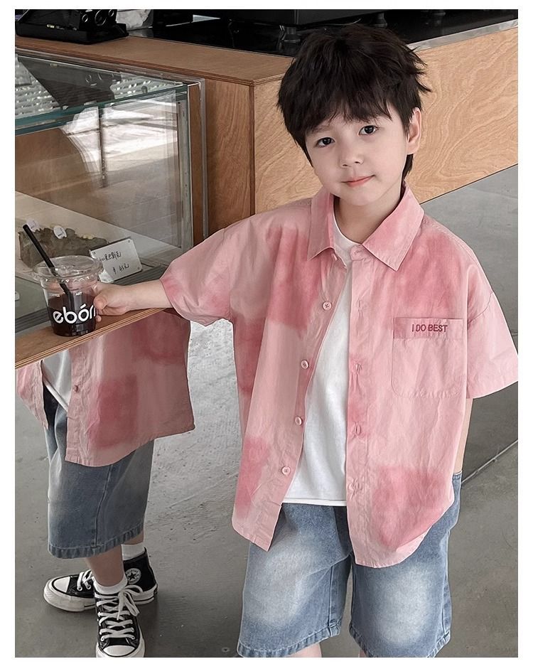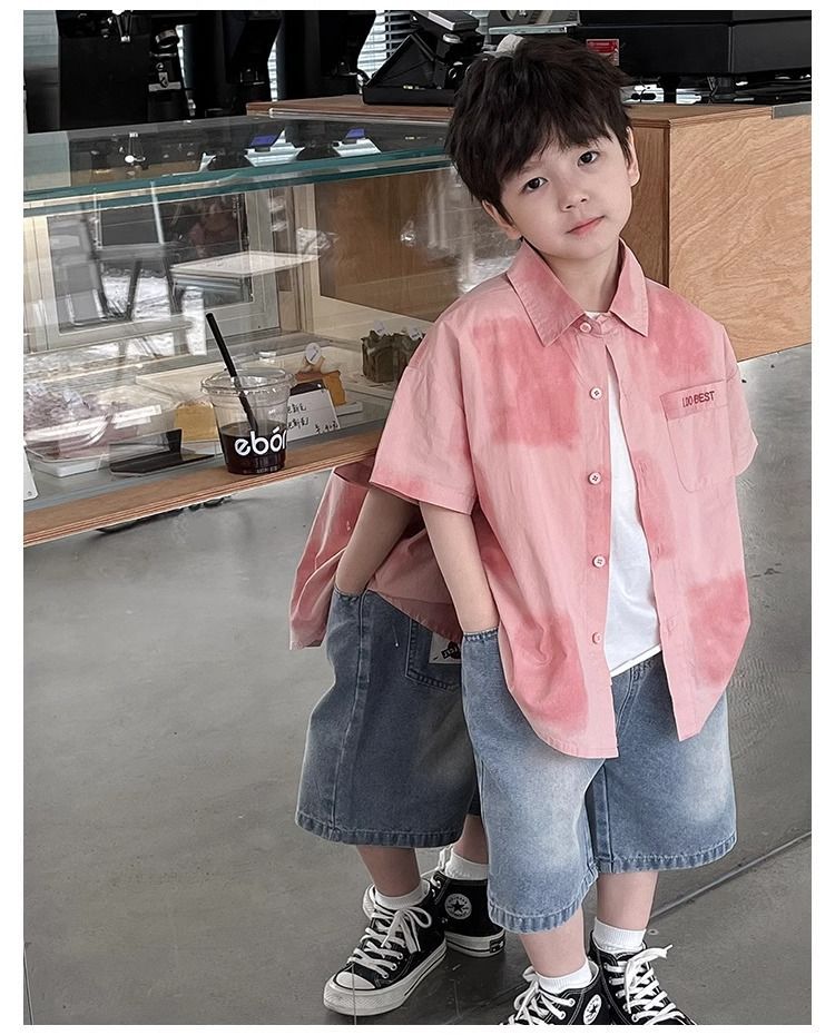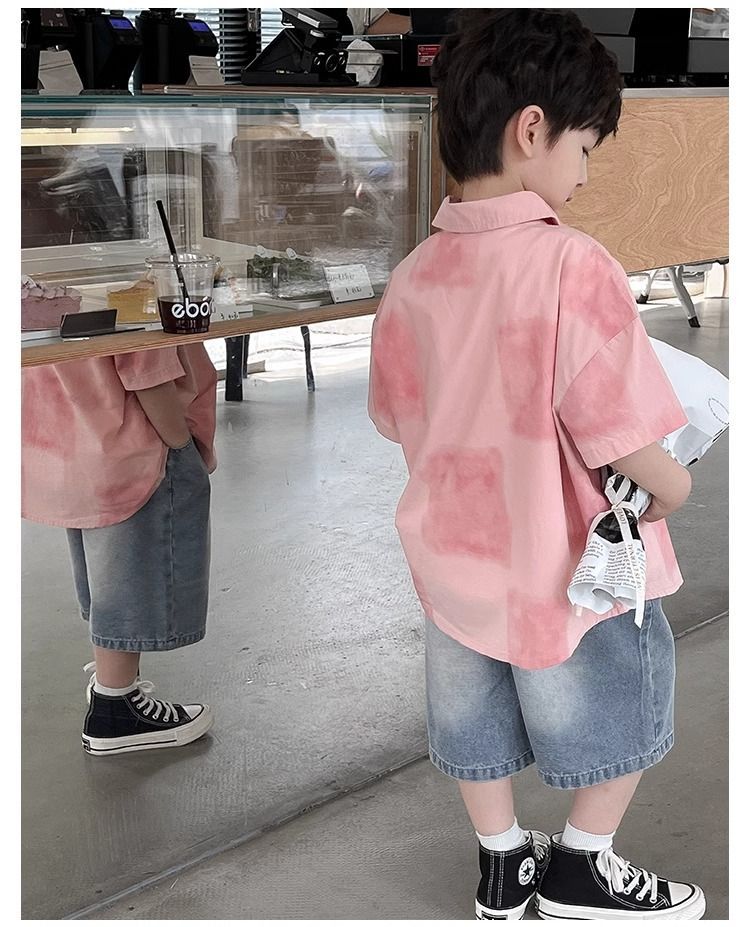 어린이와 중년 어린이를 위한 트렌디하고 멋진 셔츠, 남아용 해변 휴가 스타일 셔츠, 해변 스타일, 신선하고 예술적인 반팔 셔츠스토어 가기