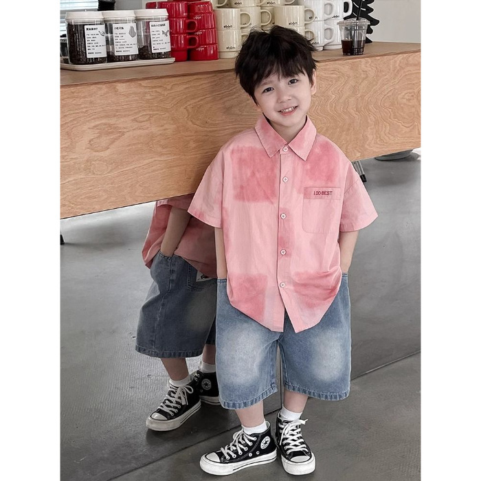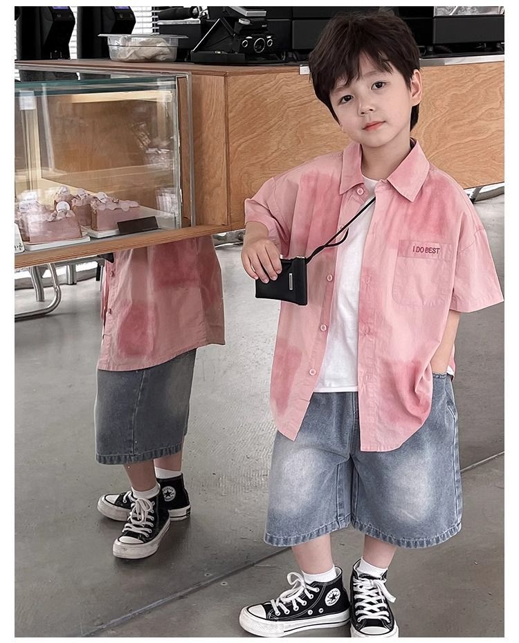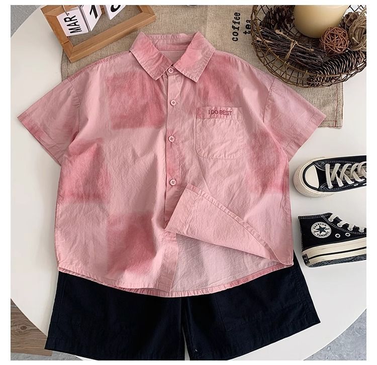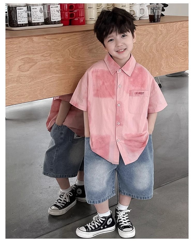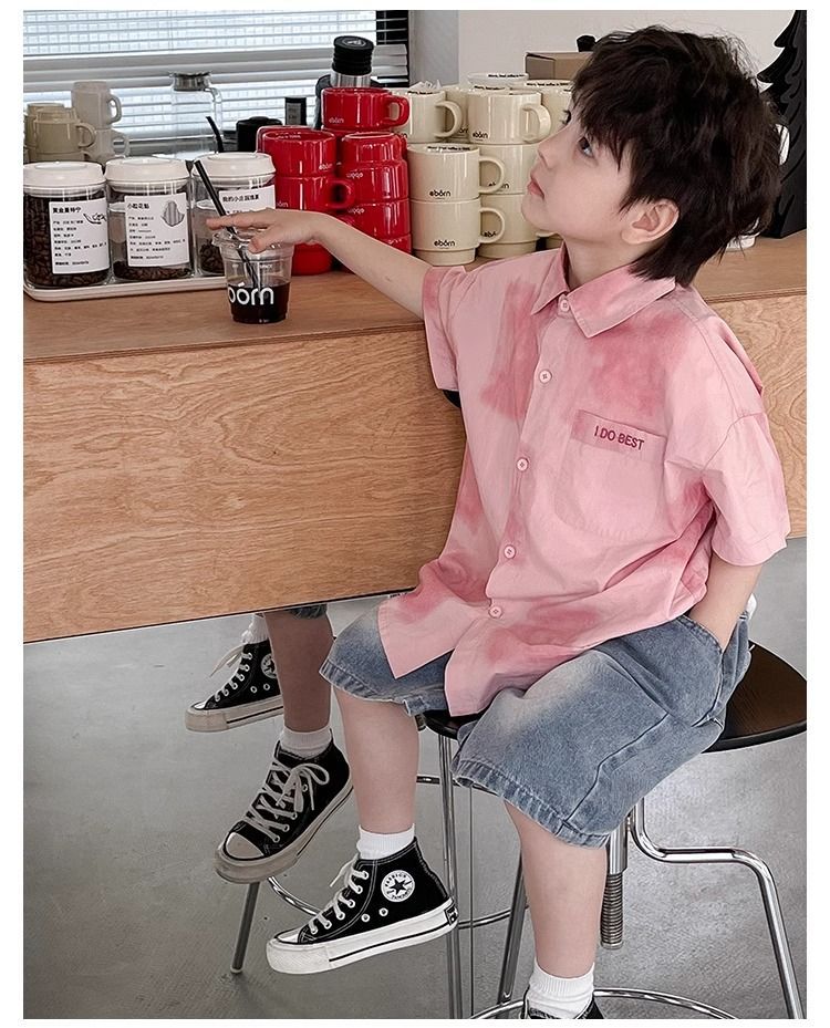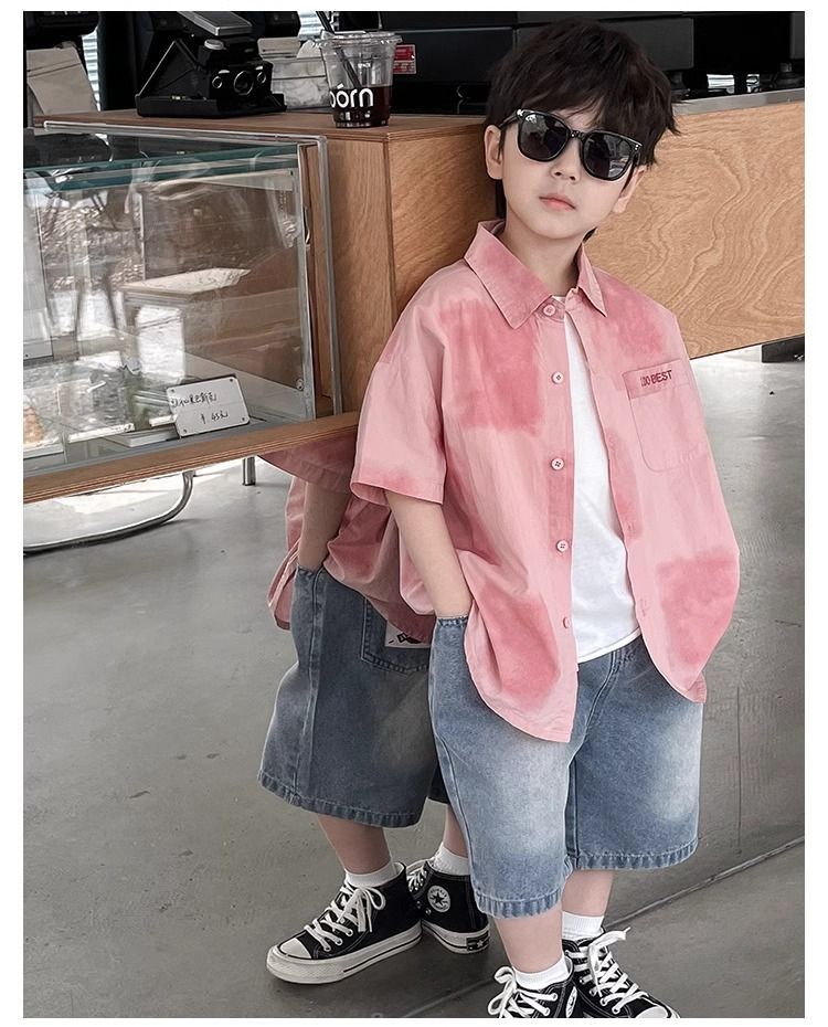 어린이와 중년 어린이를 위한 트렌디하고 멋진 셔츠, 남아용 해변 휴가 스타일 셔츠, 해변 스타일, 신선하고 예술적인 반팔 셔츠스토어 가기