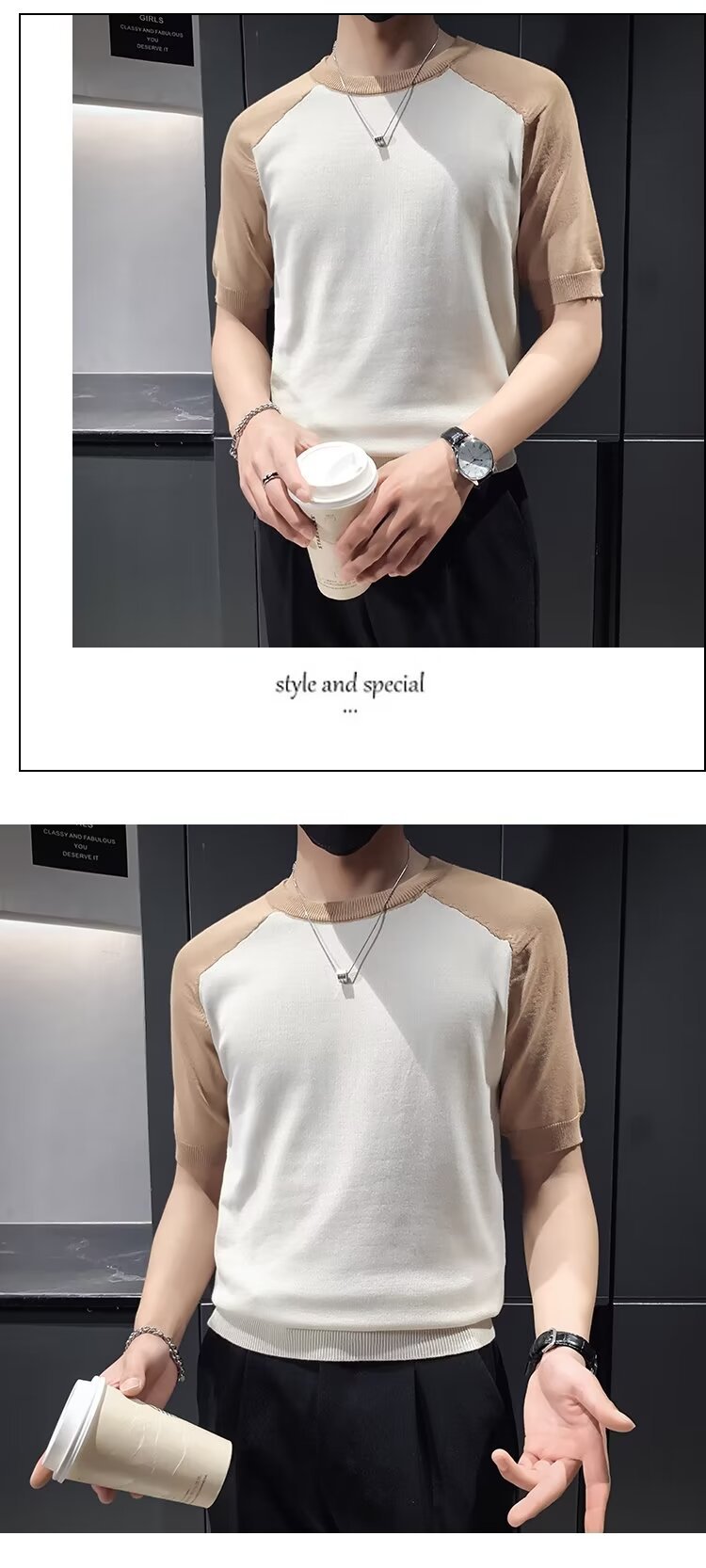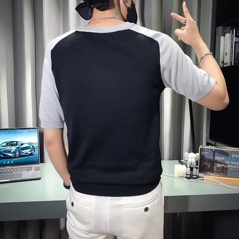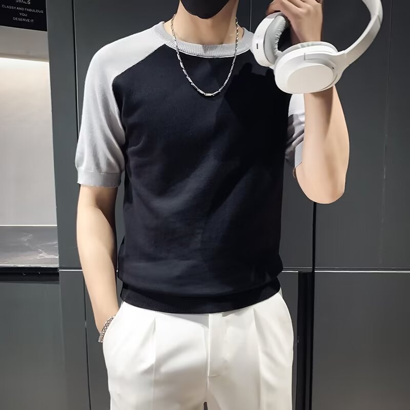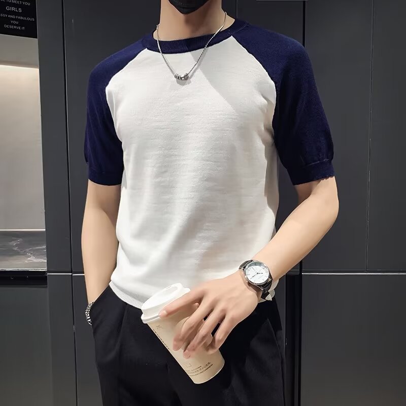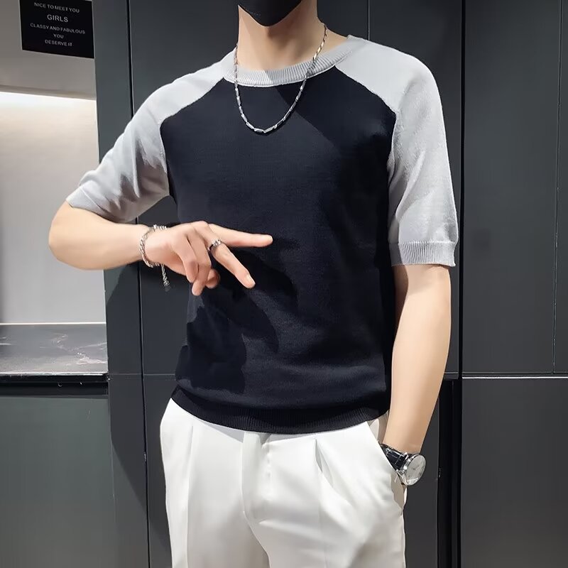 반팔 티셔츠 남성 트렌디 여름 루즈한 5부 소매 2024 신작 인터넷 연예인 트렌드 인 심플 프린트 탑스토어 가기
