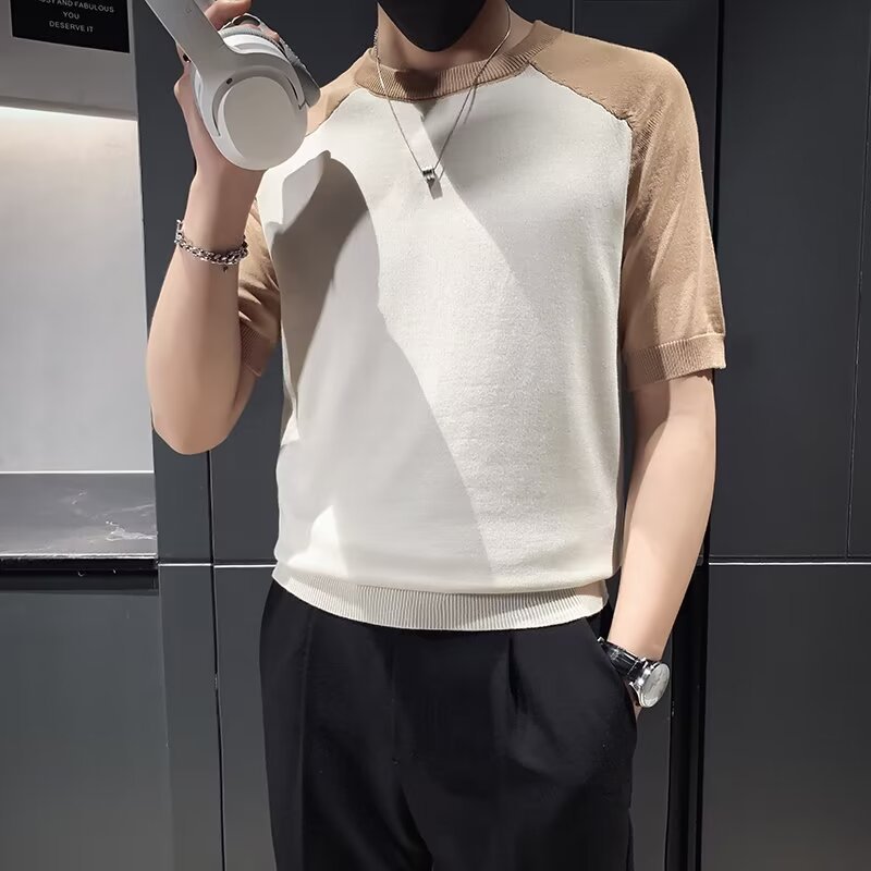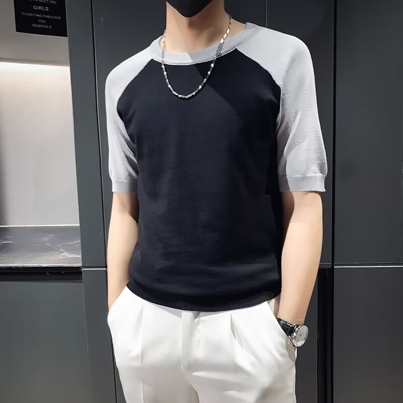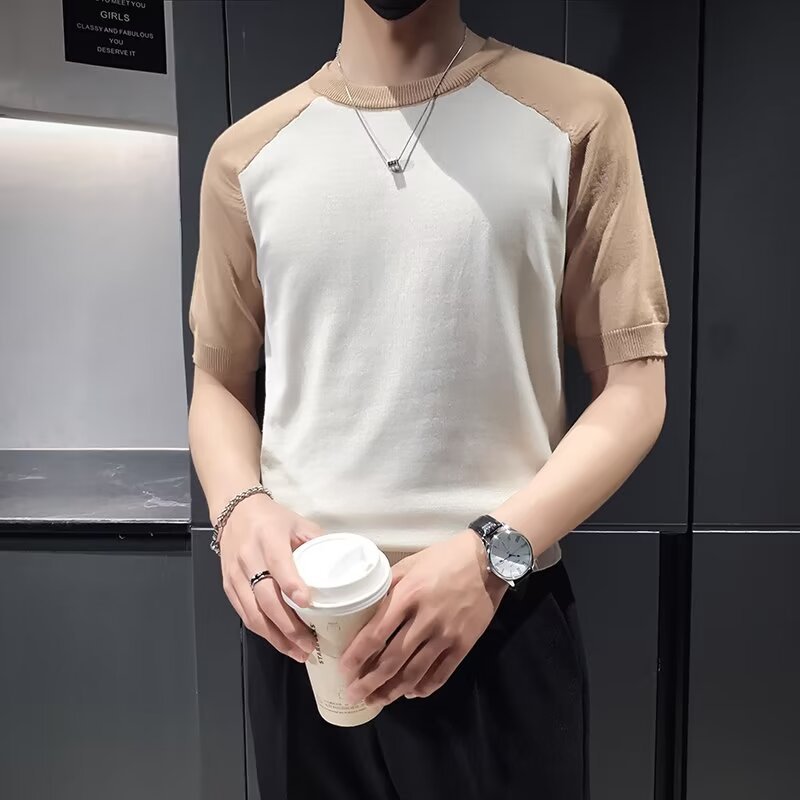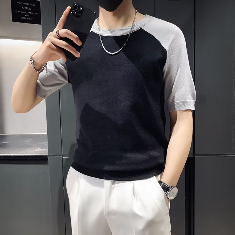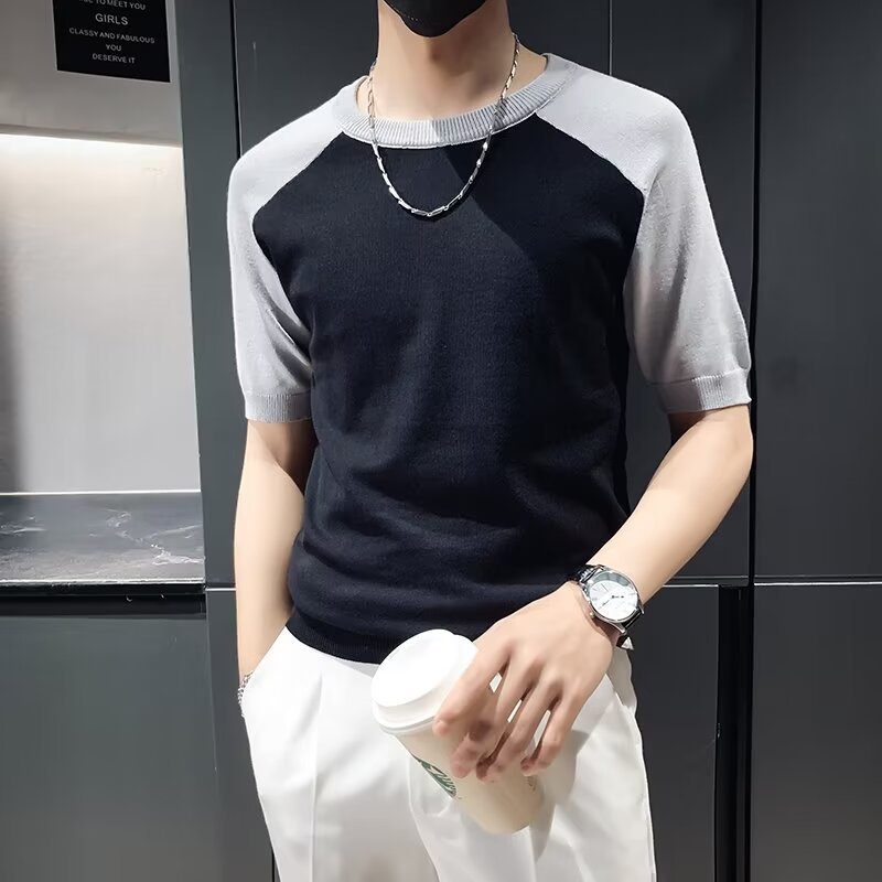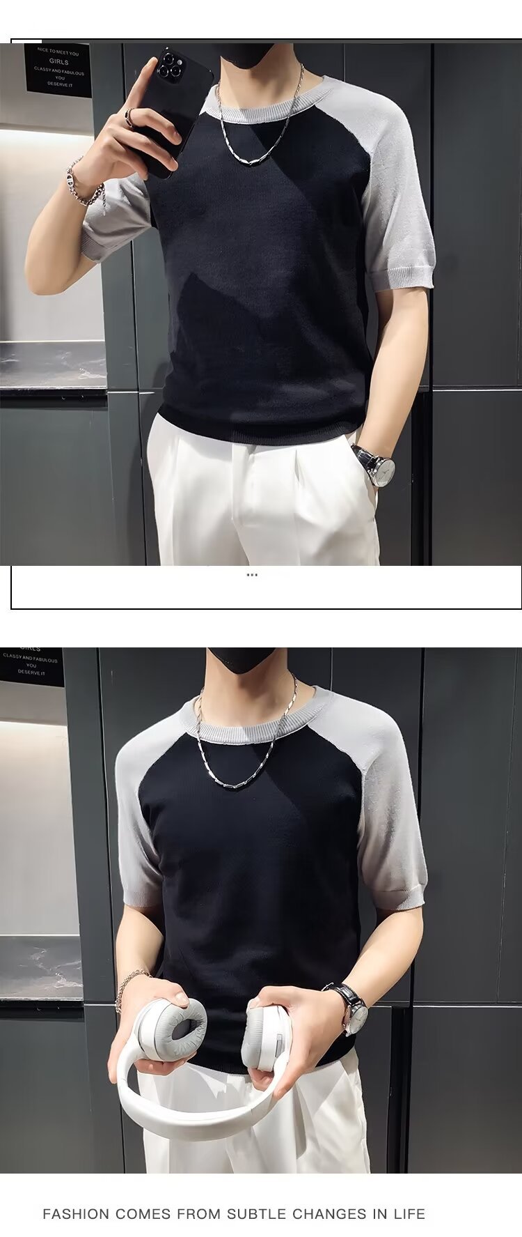 반팔 티셔츠 남성 트렌디 여름 루즈한 5부 소매 2024 신작 인터넷 연예인 트렌드 인 심플 프린트 탑스토어 가기