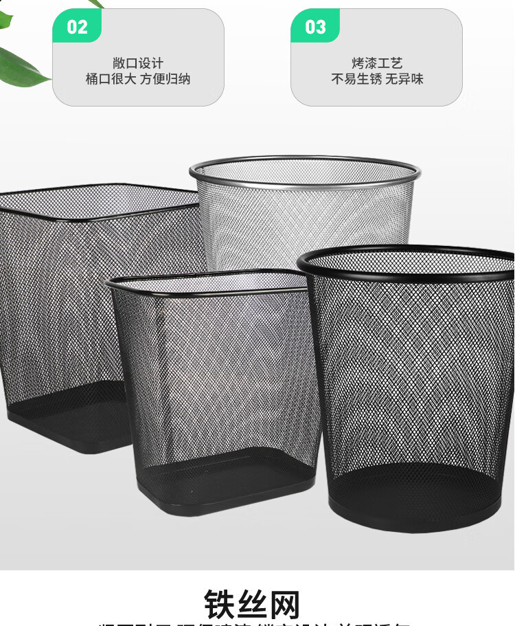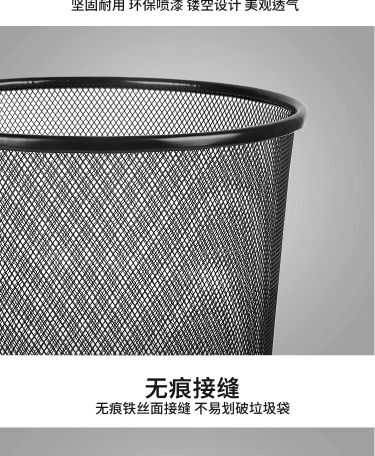 VLEN 철 쓰레기통 철 메쉬 종이 바구니 사무실 중공 검은 철망 뚜껑이없는 쓰레기통