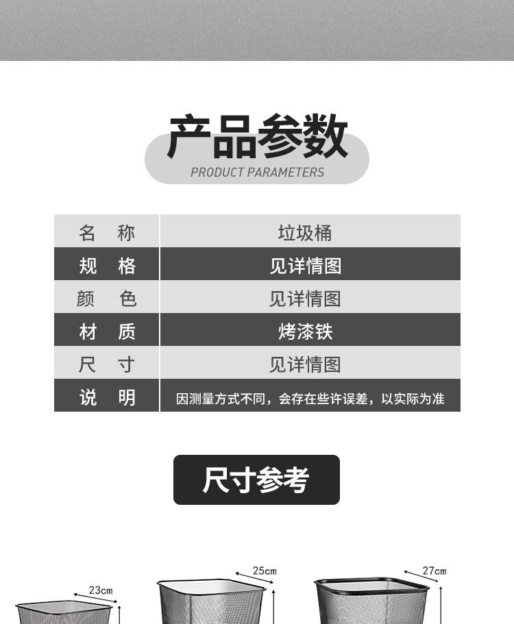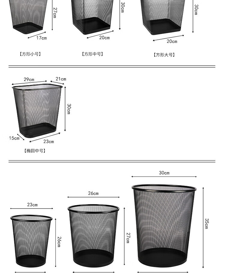 VLEN 철 쓰레기통 철 메쉬 종이 바구니 사무실 중공 검은 철망 뚜껑이없는 쓰레기통스토어 가기