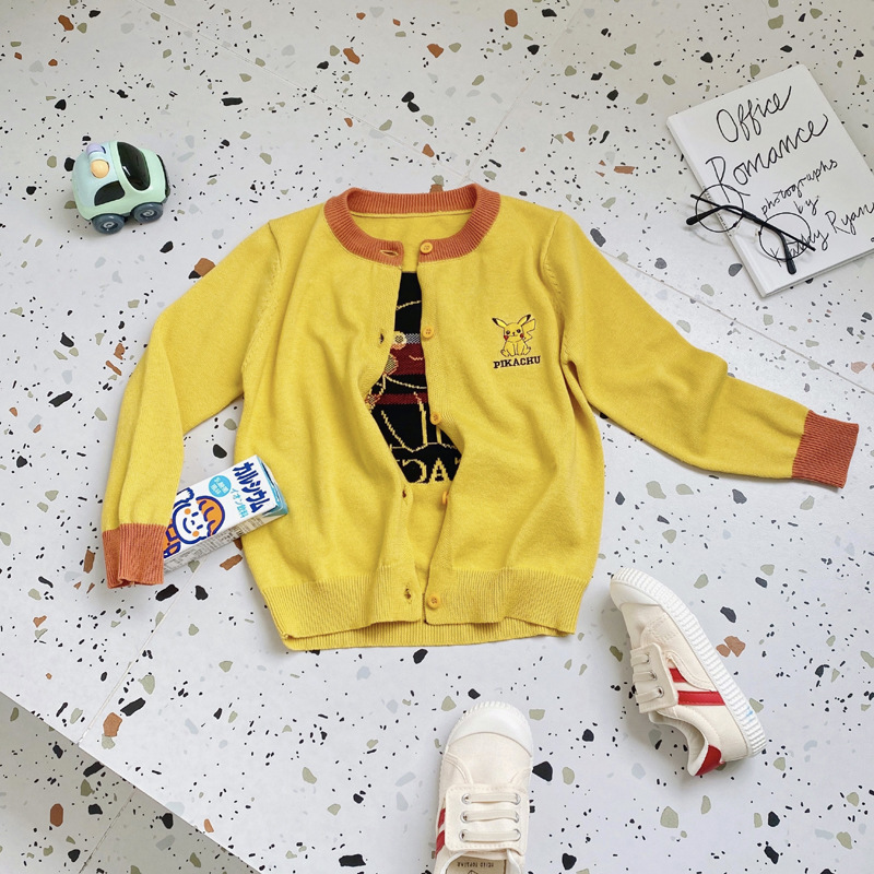 2020秋冬新款儿童针织拼色开衫提花毛衣中小童针织卡通开衫童外套