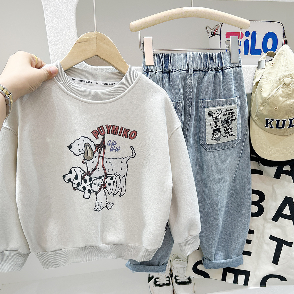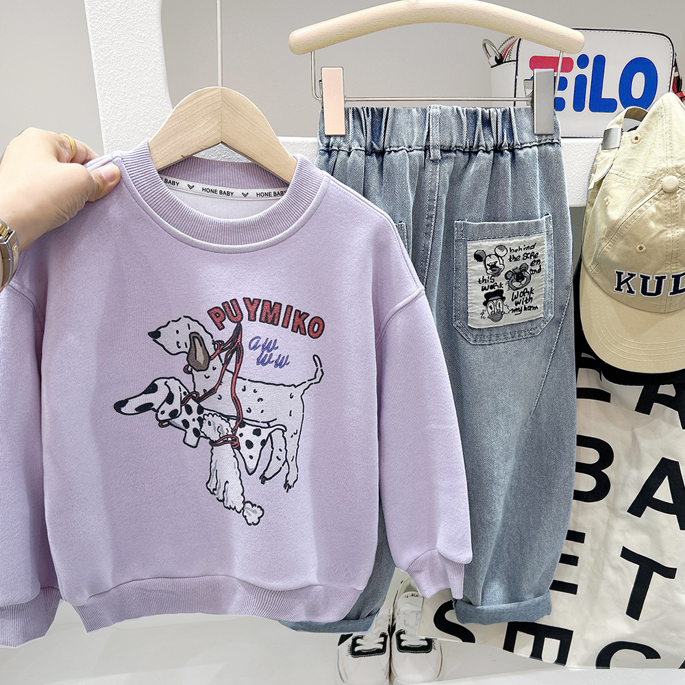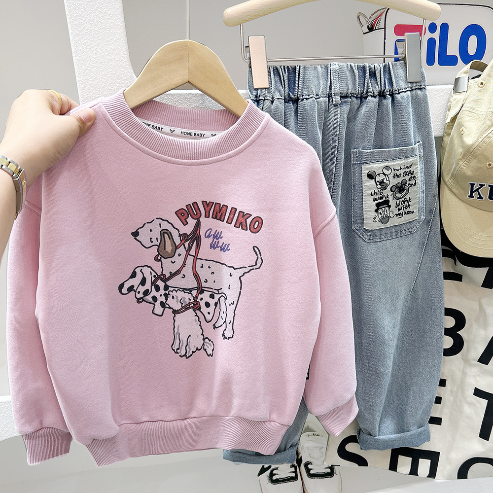 여자 가을 긴팔 스웨트 셔츠 2025 서양식 아기 봄, 가을 한국어 버전 만화 라운드 넥 바닥 셔츠 아동용 스웨트 셔츠스토어 가기