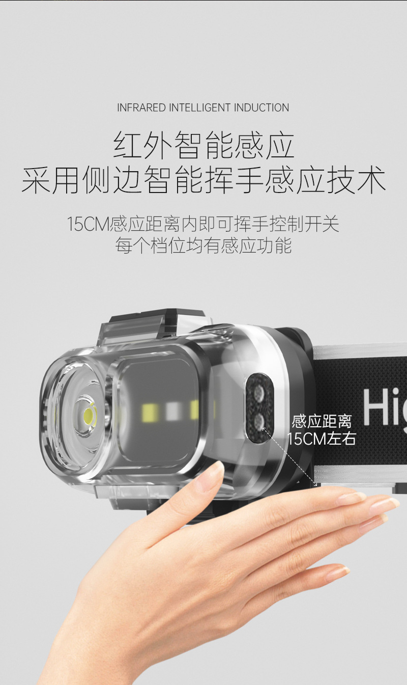 강력한 조명 LED 헤드라이트, 매우 긴 배터리 수명, 흔드는 지능형 헤드라이트, 다기능 휴대용 충전식 헤드 장착 작업등