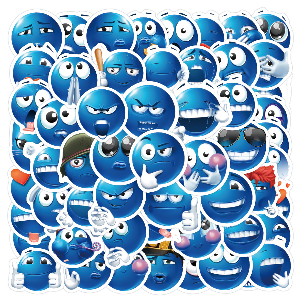 103개의 파란 얼굴 이모티콘 스티커, 재미있는 모래 조각품, 보편적인 주변 장식, 여행 가방, 수첩, 방수 스티커