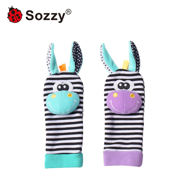 새로운 소지 손목 스트랩 딸랑이 아기 양말 얼룩말 세트 장난감 신생아 선물 반지 반지 종이스토어 가기