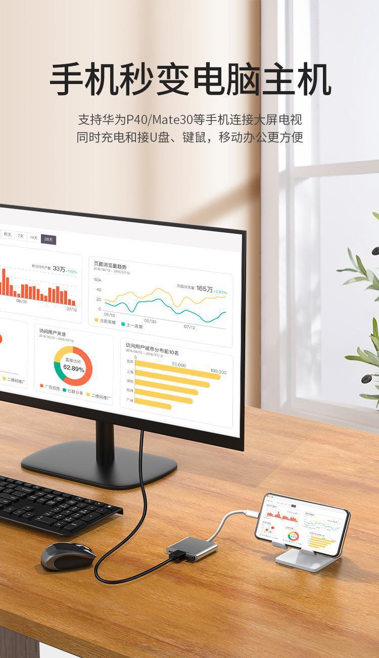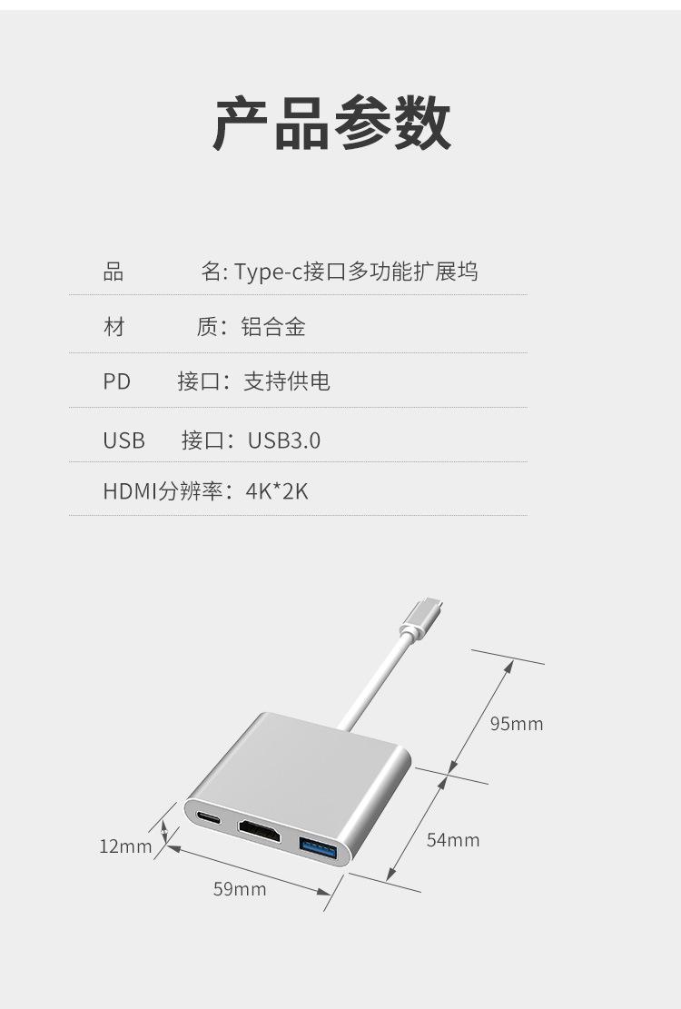跨境typec转hdmi三合一扩展坞笔记本电脑多接口多功能typec扩展坞
