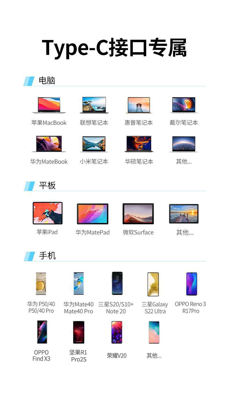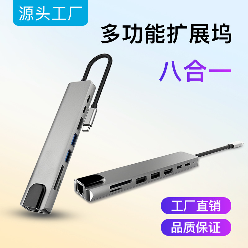 • 【8-in-1】Type-C - HDMI+USB3.0*2+Type-C+PD+SD+TF+100M RJ45