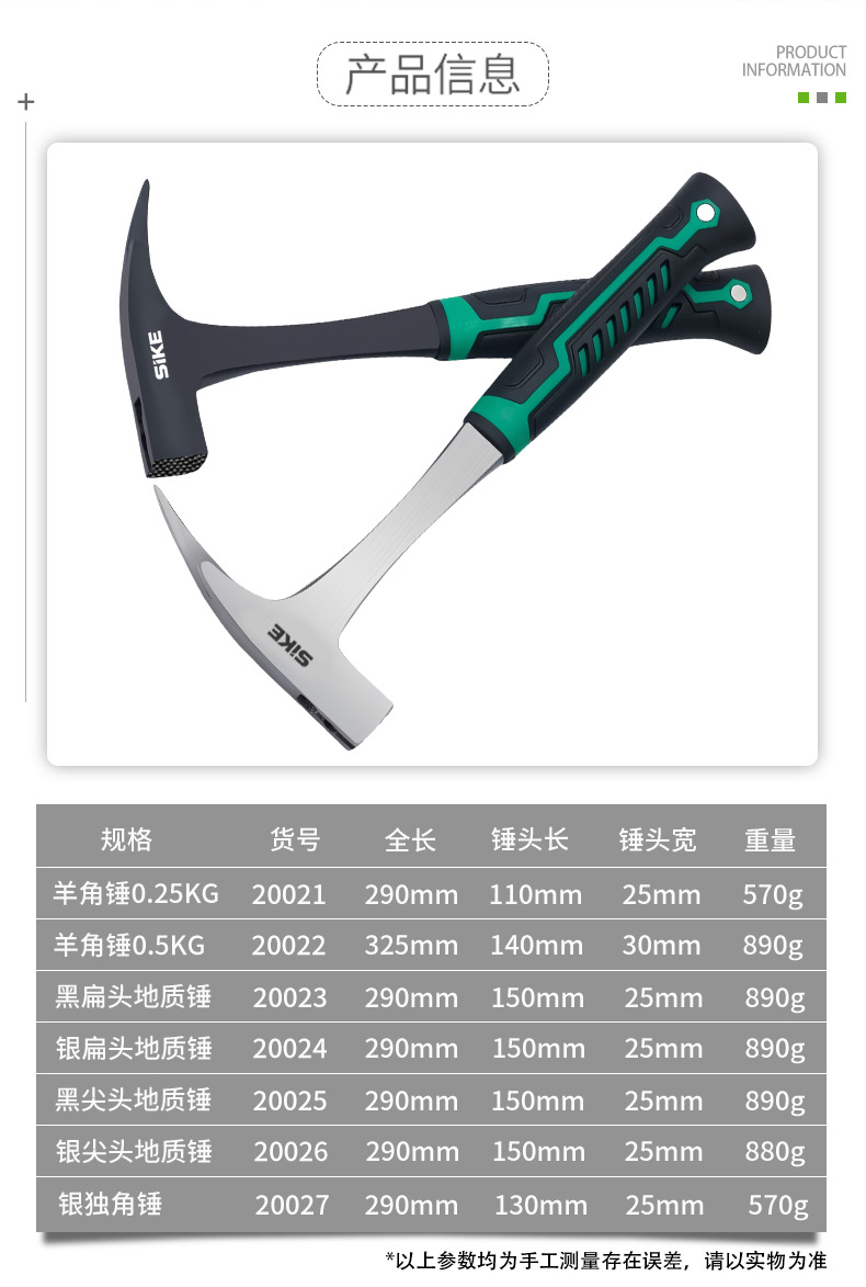 제조업체 직접 지질 탐사 망치 판금 망치 다기능 긴급 사용 뾰족한 플랫 헤드 등산 석재 채굴 망치스토어 가기