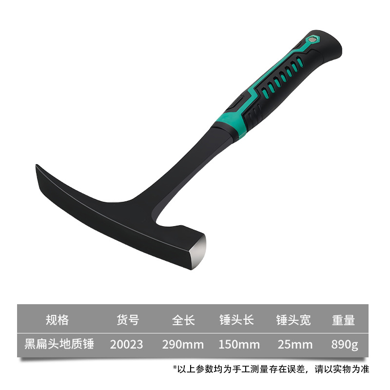 • 녹색 검정색 은색 머리 플랫 헤드 지질 망치