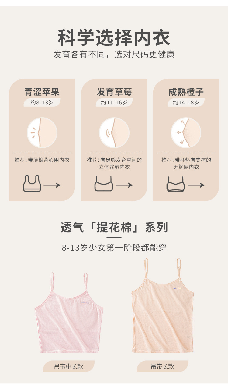 발달기 여아 속옷, 초등학생, 중학생 여아 브라, 아동 조끼, 일체형 면 패드 도매스토어 가기