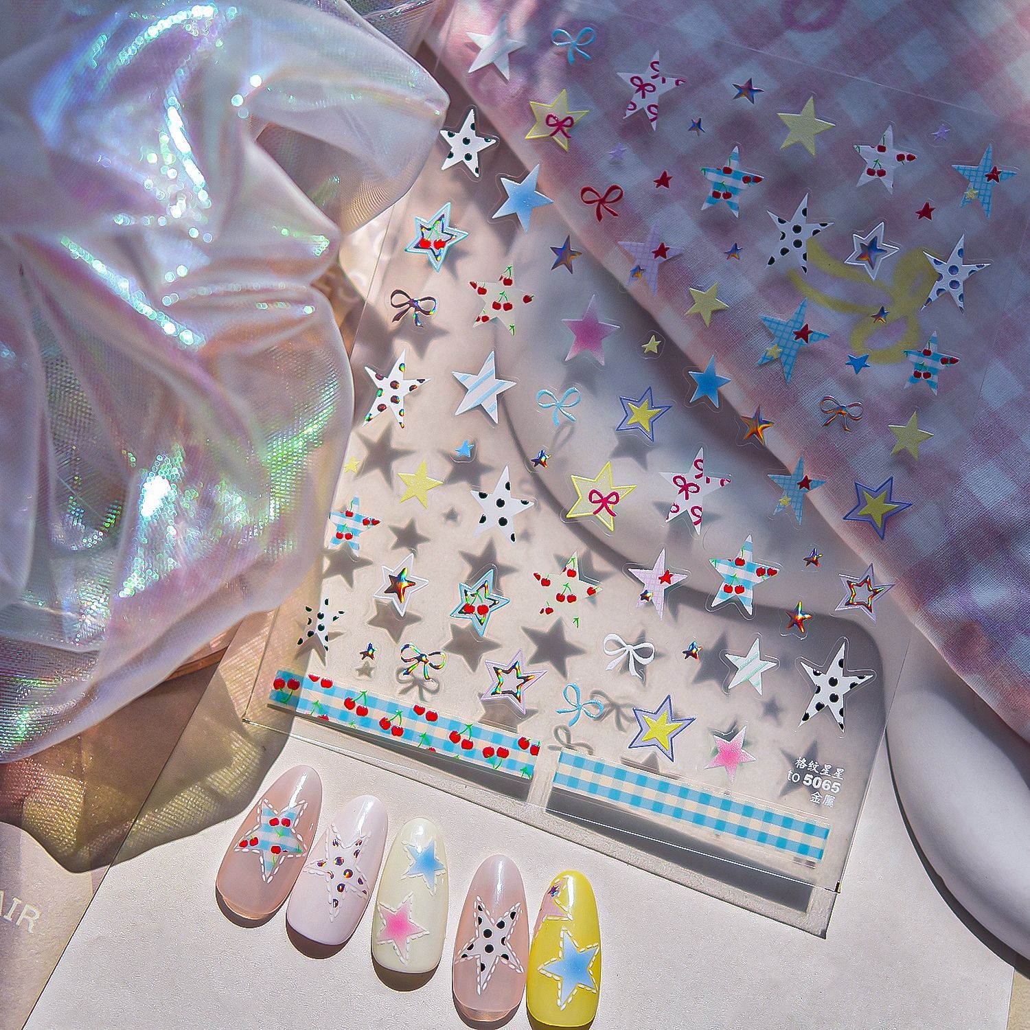 tomoni 메탈 네일 아트 스티커 ins 스타일 아이스 투명 네일 스티커 격자 무늬 스타 쥬얼리 스티커 네일 아트스토어 가기