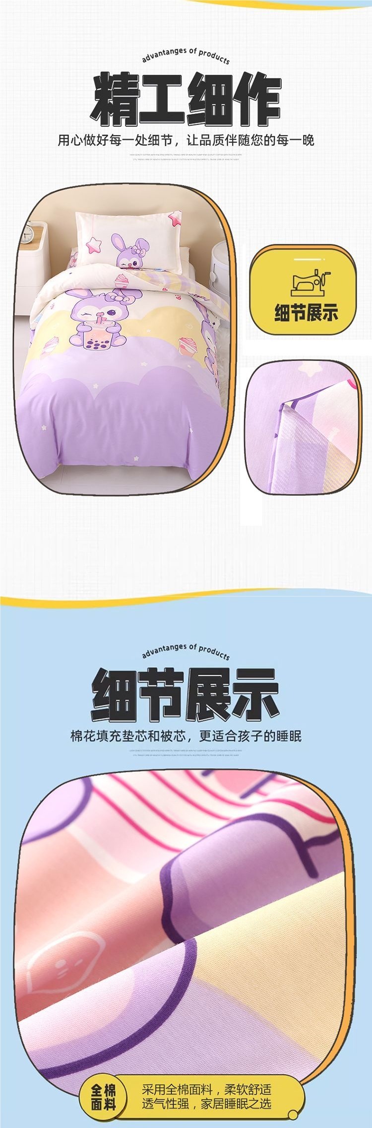 유치원 이불 3점 세트 어린이 이불 커버 아기 유치원 6점 세트 이불 침구 순면 특별 낮잠 겨울