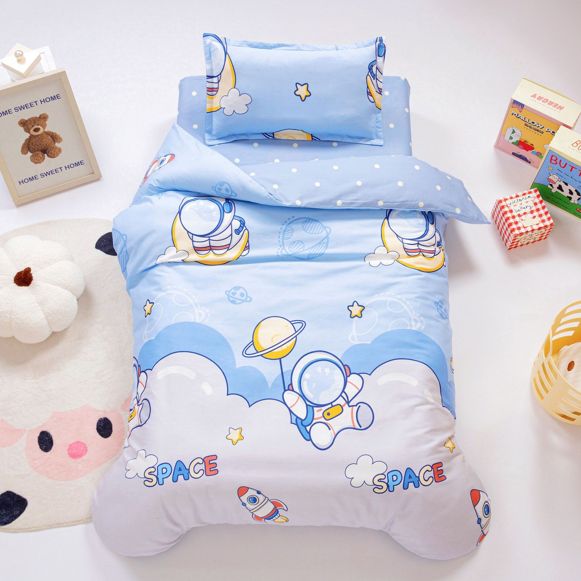 유치원 이불 3점 세트 어린이 이불 커버 아기 유치원 6점 세트 이불 침구 순면 특별 낮잠 겨울스토어 가기