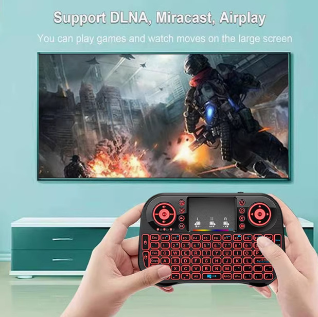 뜨거운 판매 i10 미니 공중 비행 쥐 7 색 다채로운 키보드 리튬 이중 모드 2.4g