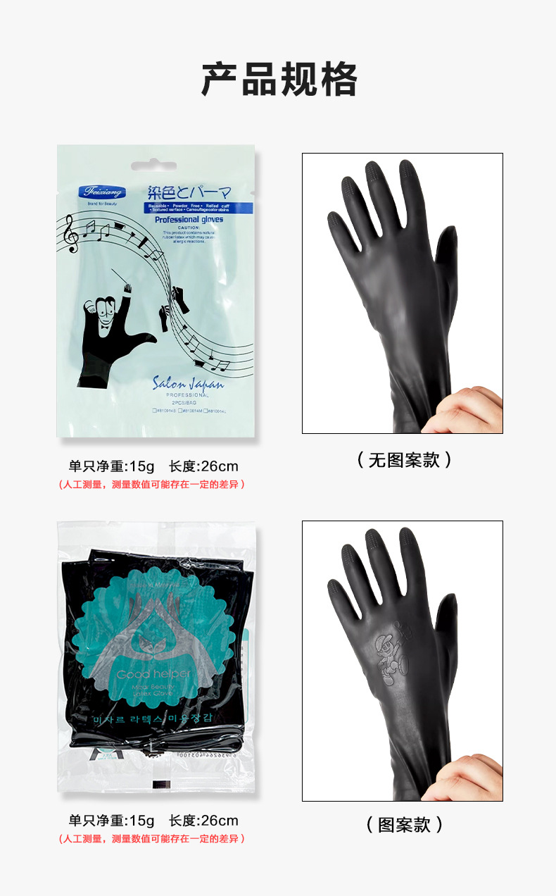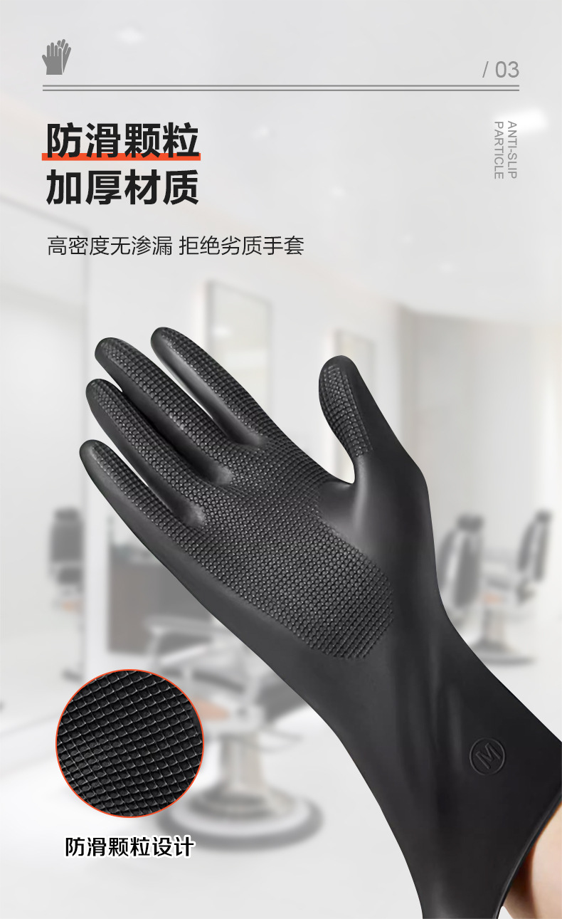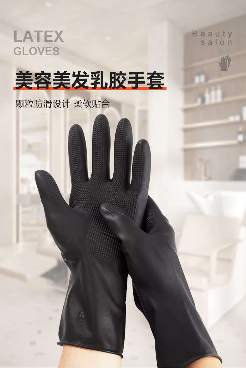 Kangbang 미용실 머리 염색 및 마사지 특수 라텍스 장갑 검정색 다기능 두꺼운 산 및 알칼리 방지 독립 장갑
