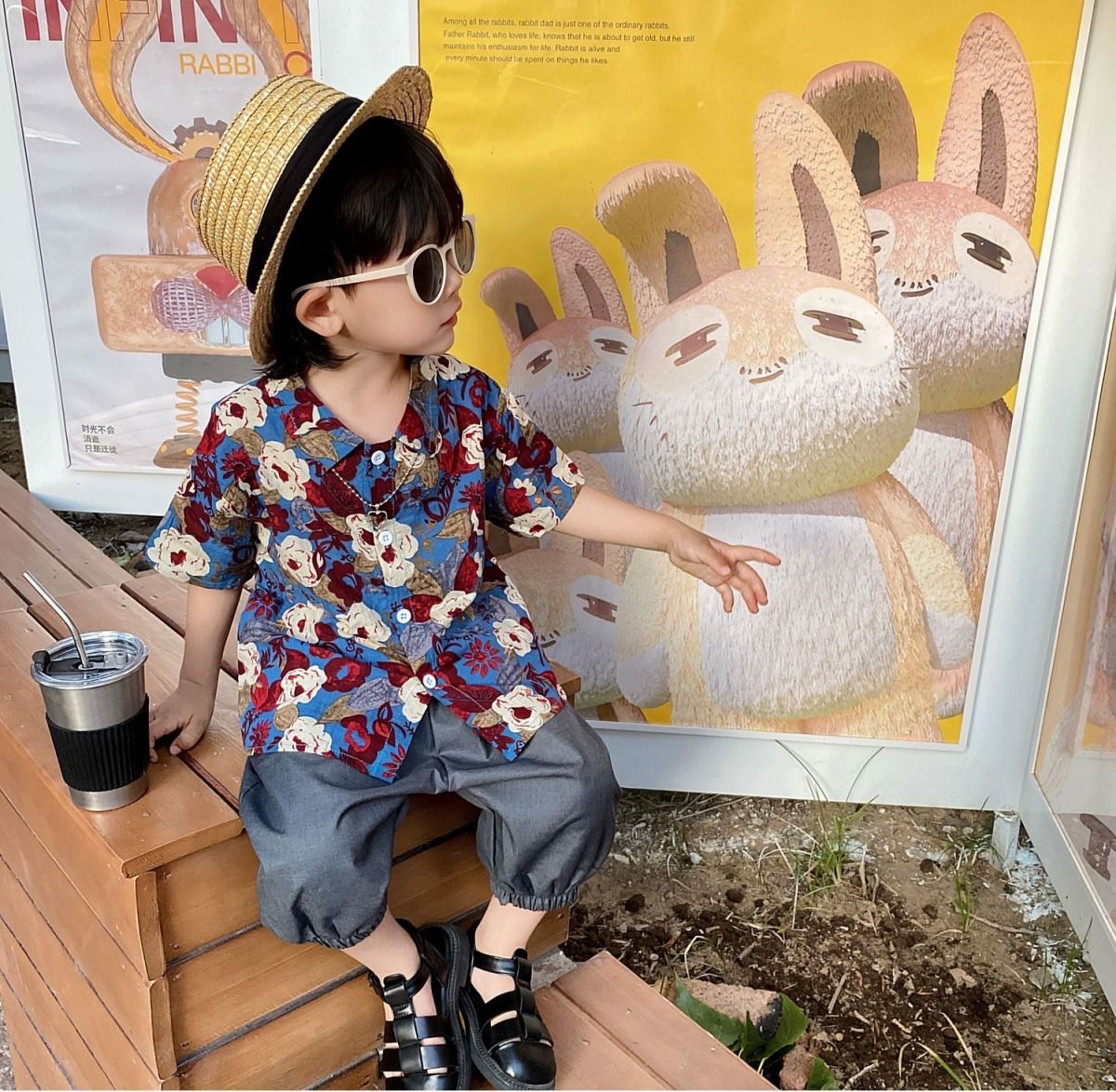 • 그림 컬러 꽃무늬 셔츠
