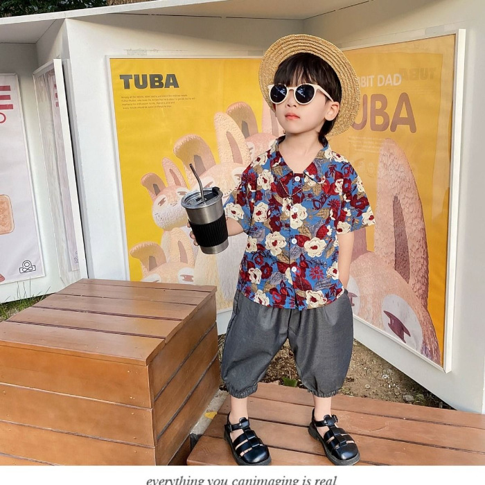 소년 셔츠 여름 착용 2025 새로운 어린이 홍콩 스타일 반팔 셔츠 트렌디하고 멋진 잘 생긴 소년 여름상의스토어 가기
