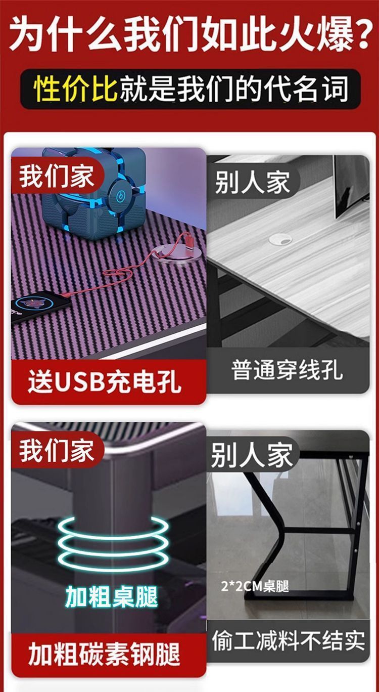 탄소 섬유 e-스포츠 테이블 조정 가능한 테이블과 의자 조합 홈 임대 룸 책상 침실 더블 테이블 대형 게임