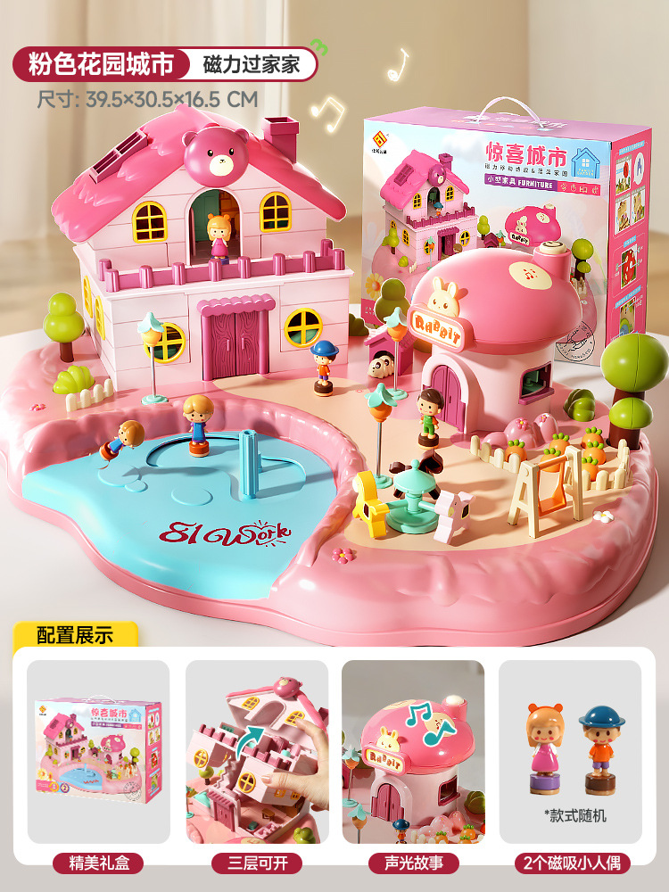 어린이 자석 성 소녀 놀이 집 공주 집 소리와 빛 음악 재미있는 대화 형 빌딩 블록 조립 인형 장난감스토어 가기