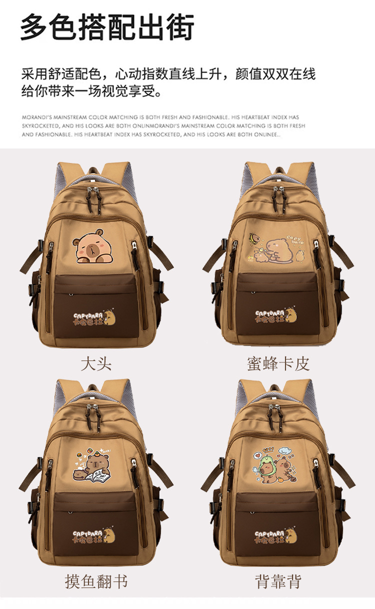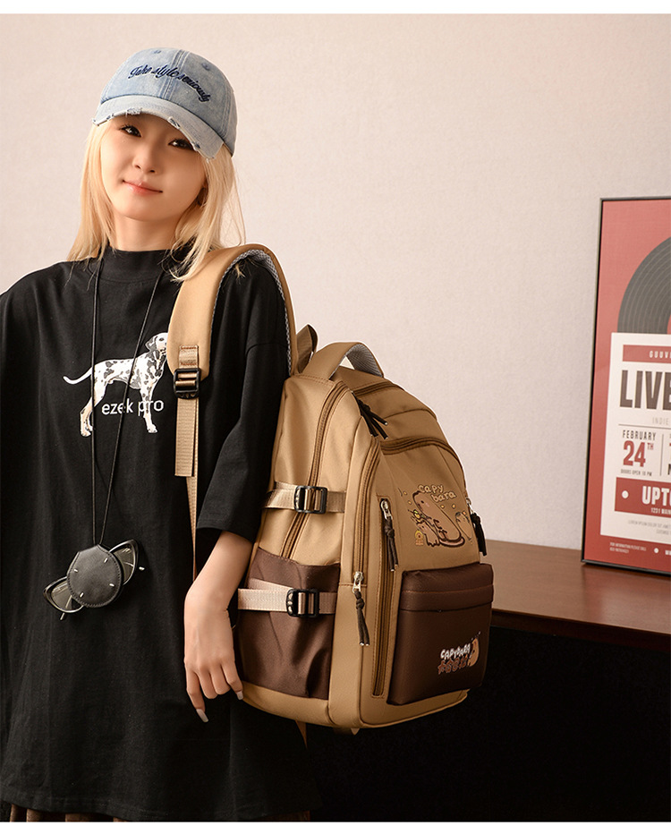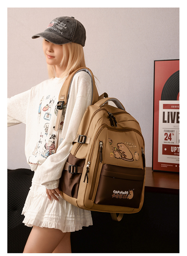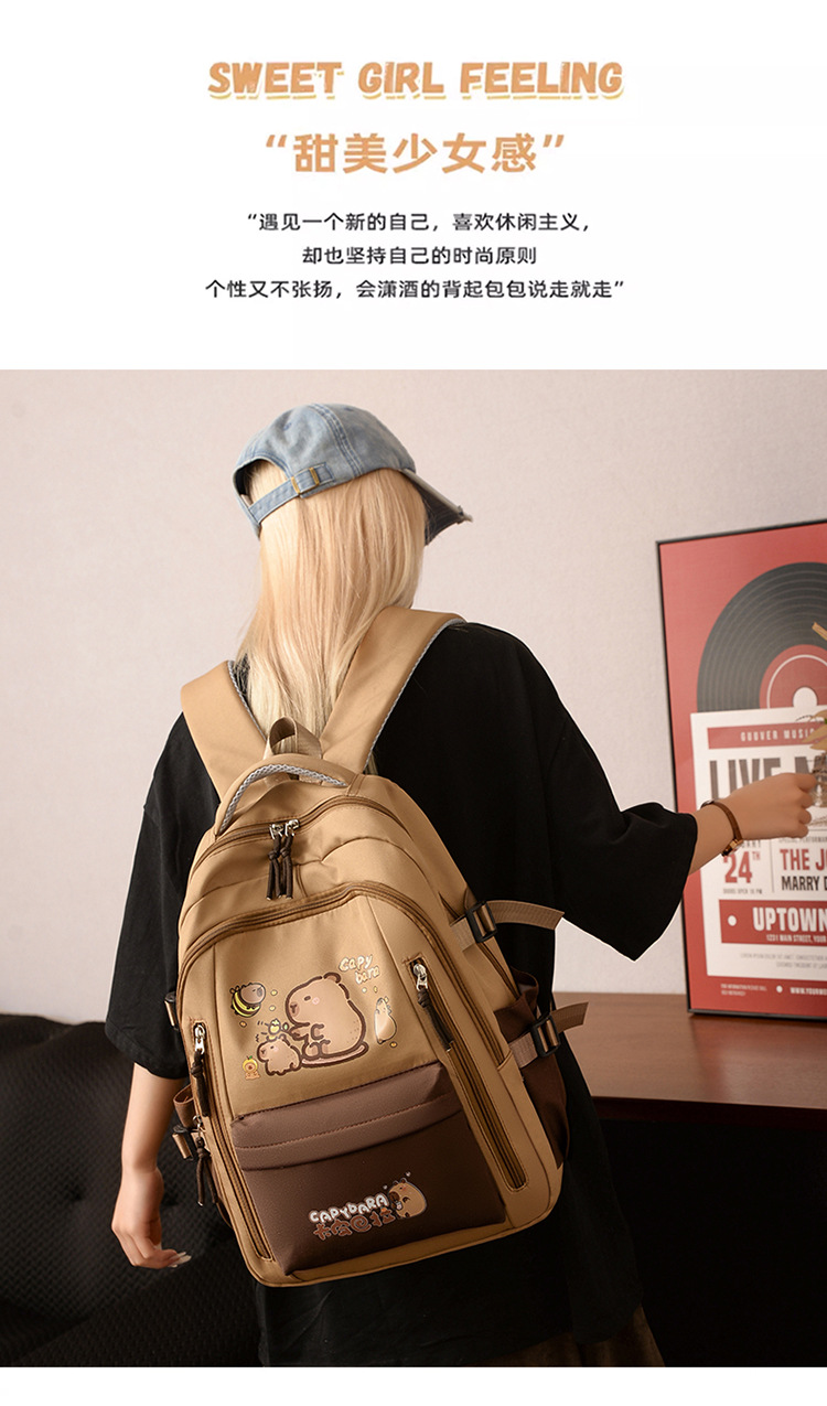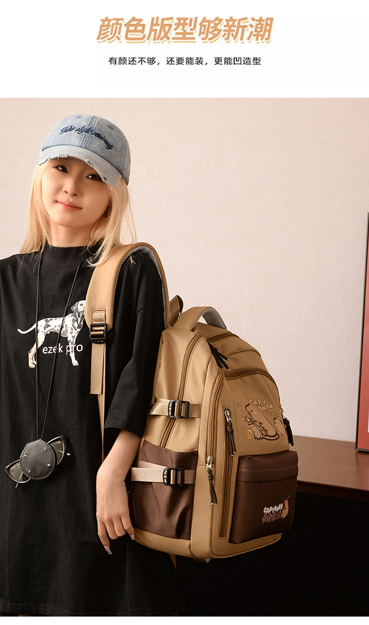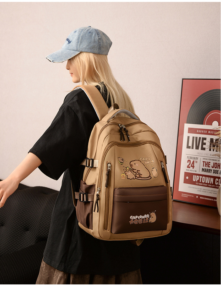 남녀 중학교 대용량 귀여운 배낭 카피바라 중학생 소녀 학교 가방