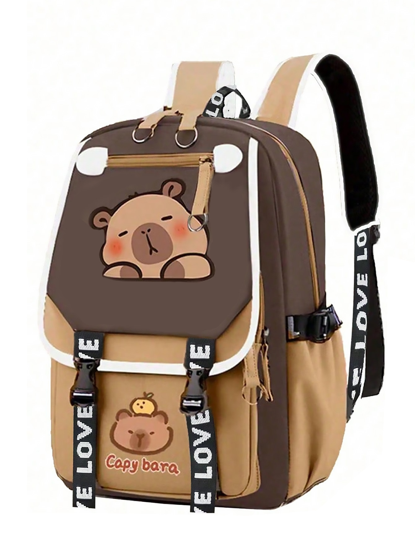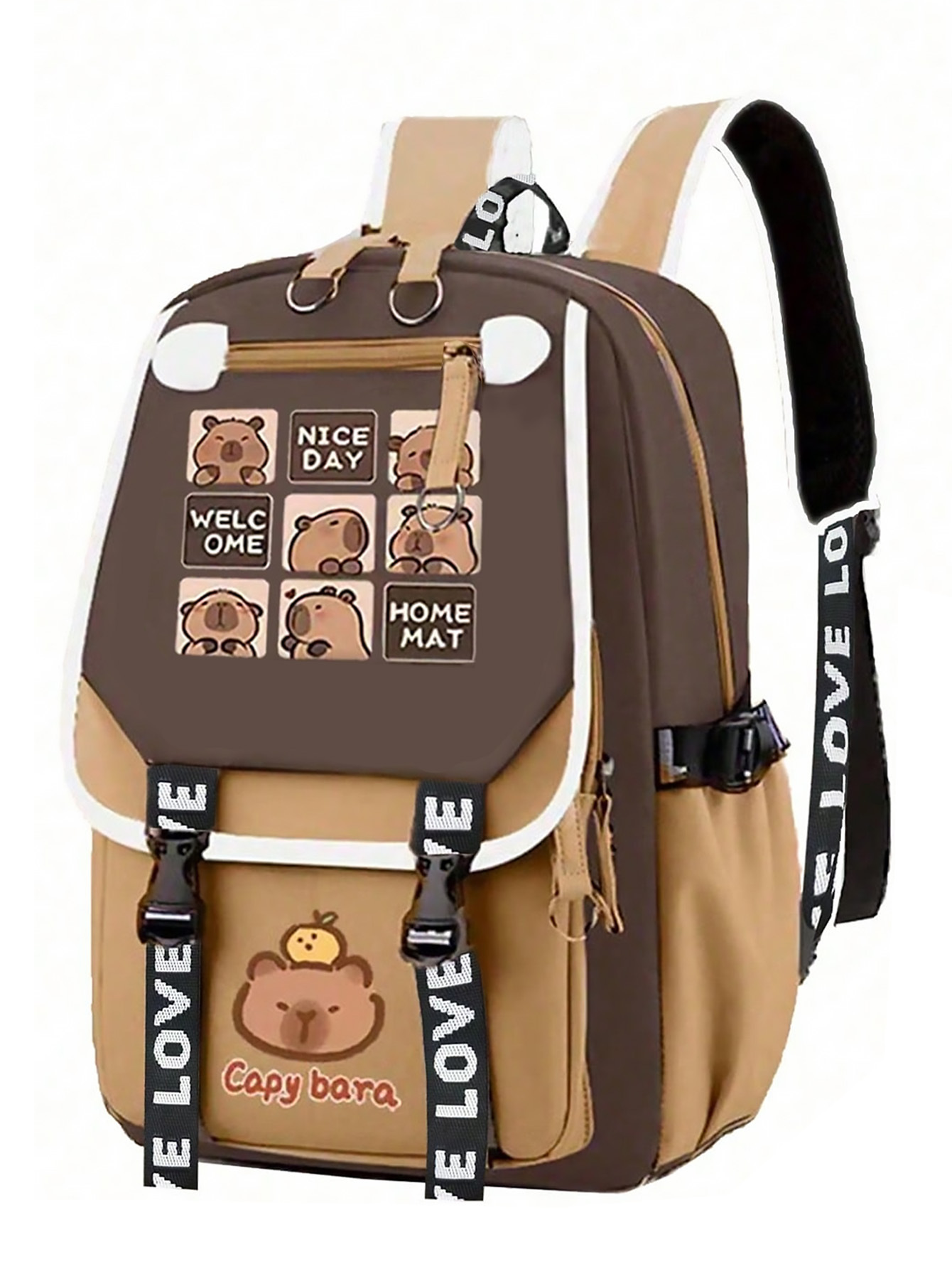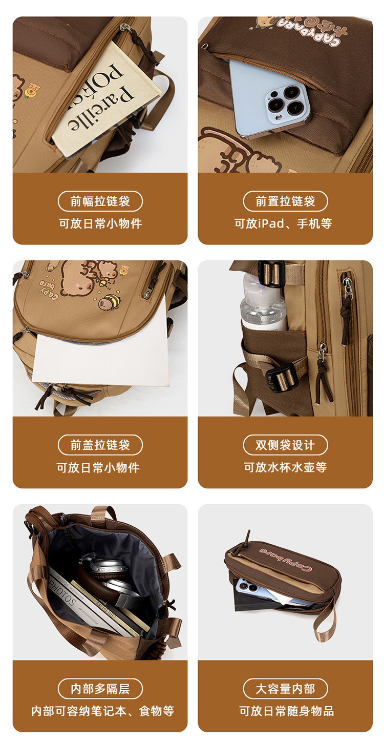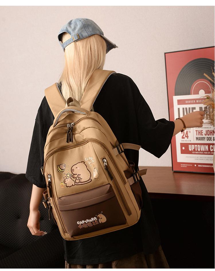 남녀 중학교 대용량 귀여운 배낭 카피바라 중학생 소녀 학교 가방