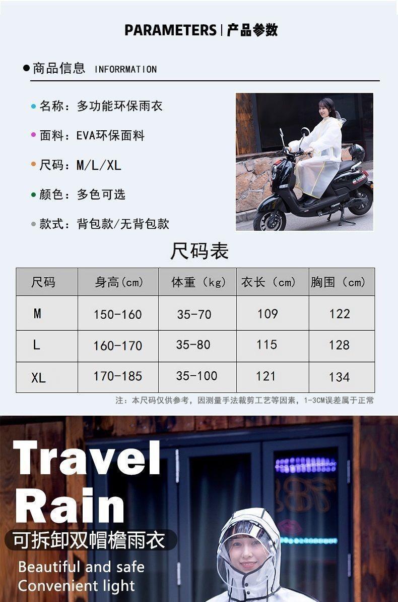 남성용 및 여성용 비옷, 확장형 이중 챙, 지퍼백, 비 방지, 전신 사이클링, 전기 자동차 걷기, 성인 학생용 비옷스토어 가기