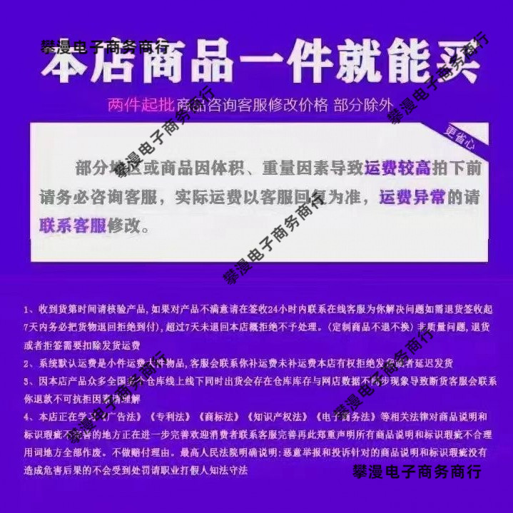 购物须知:本店商品标价,都是不包括税点,开票另加税点,详情咨询客服。 部分商品及偏远地区(例如:新疆、西藏、香港、澳门、台湾等地区)无法包邮,详情请询问客服修改运费