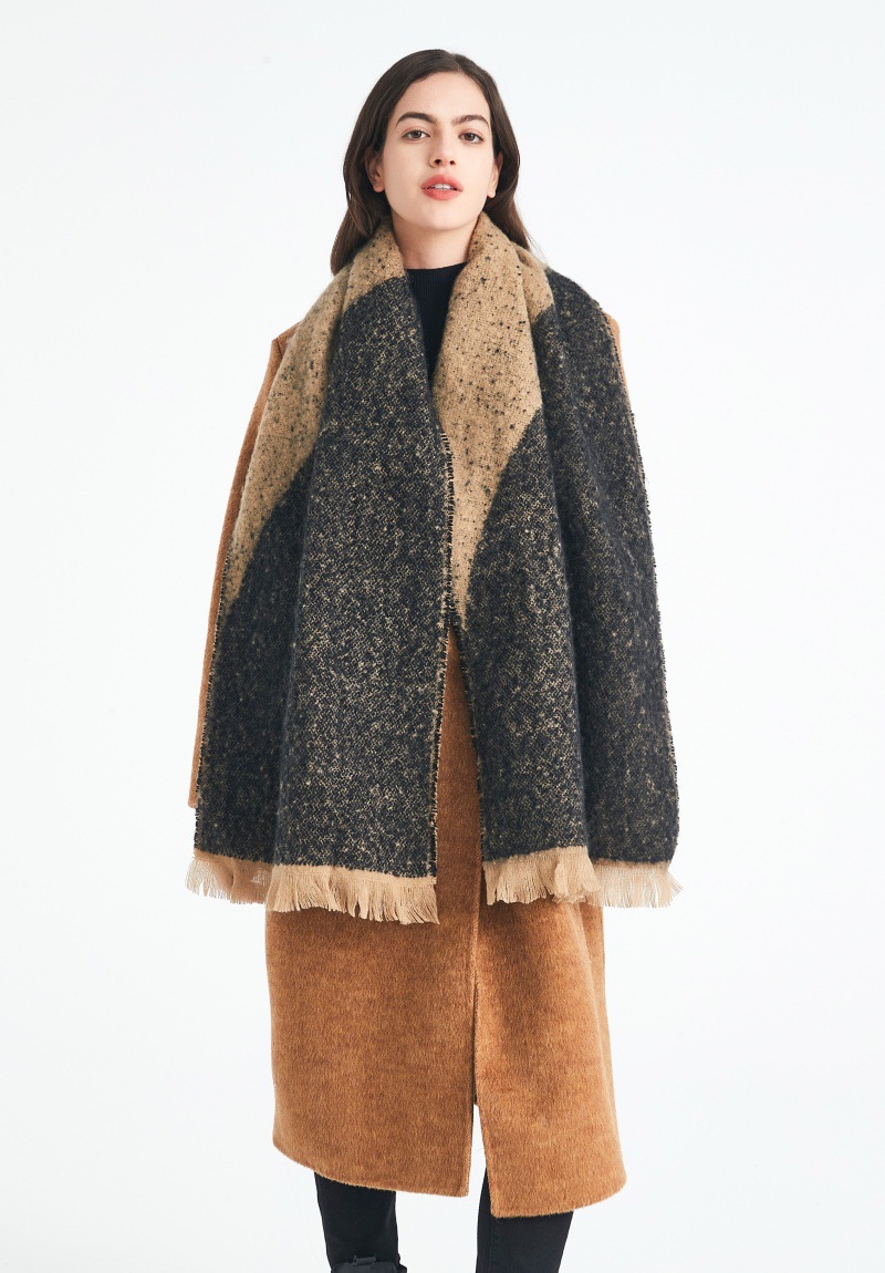 유럽과 미국의 새로운 가을, 겨울 스타일 서클 모래 자카드 컬러 매칭 술 스카프 여성 두꺼운 목도리 제조 업체 도매스토어 가기